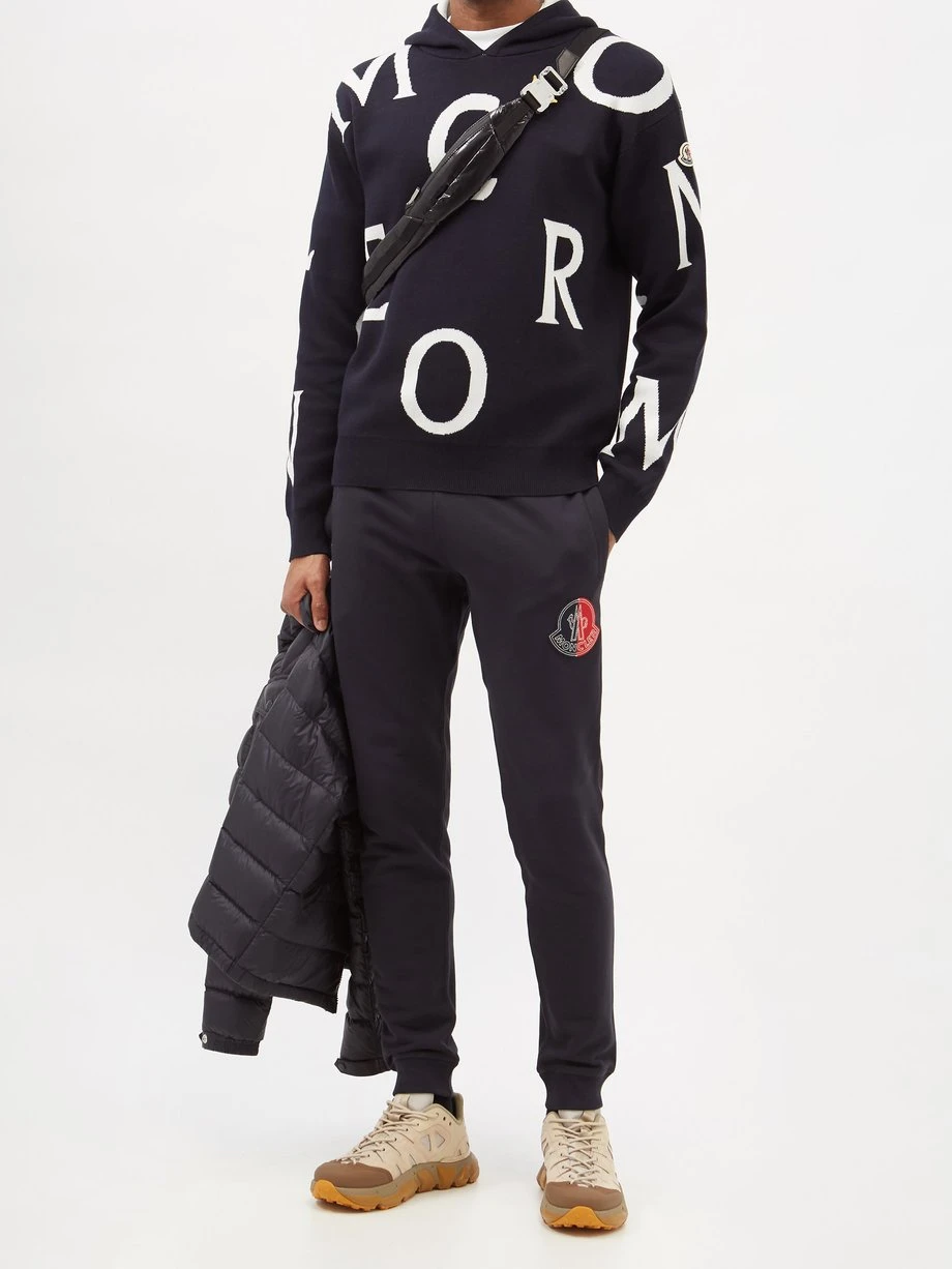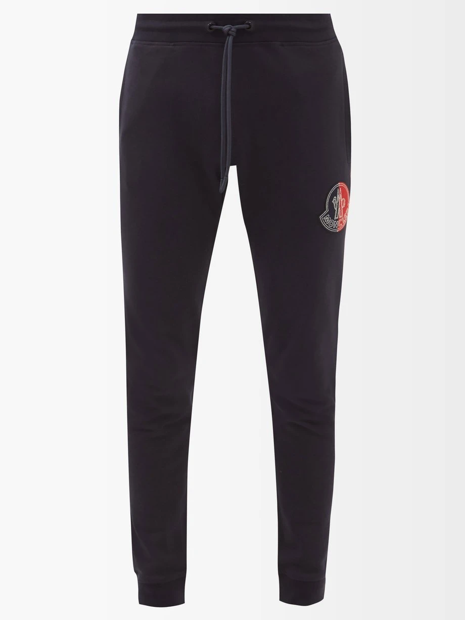 2 MONCLER 1952’s black track pants are crafted from soft cotton jersey that’s hallmarked with a logo-embroidered patch and finished with slip pockets.