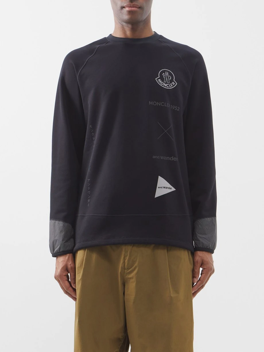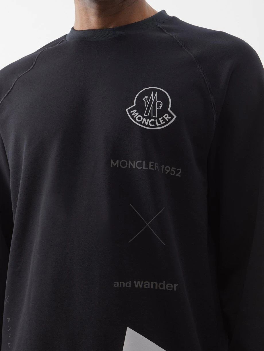 The merging of Japanese hiking label And Wander with 2 Moncler 1952 is celebrated in the logo prints of this black T-shirt, which appear in both Latin and Katakana scripts.