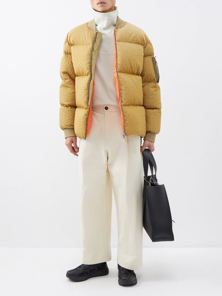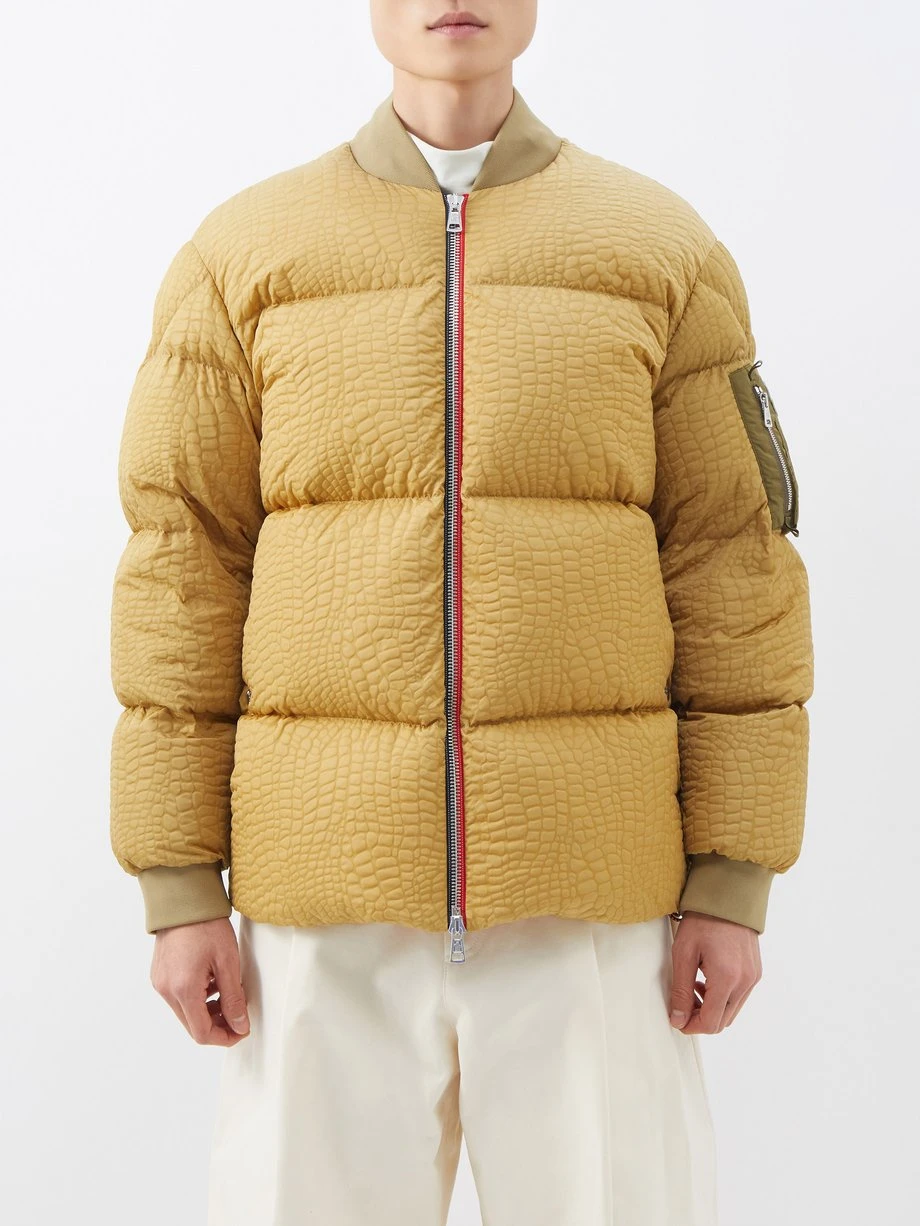 2 Moncler 1952’s creative director Sergio Gambon imbues this gold-yellow Medway coat with a stylish perspective, highlighted by the crocodile-debossed pattern. It’s crafted from quilted-down shell with ribbed edges and a dual-zip front that leads into an orange lining.