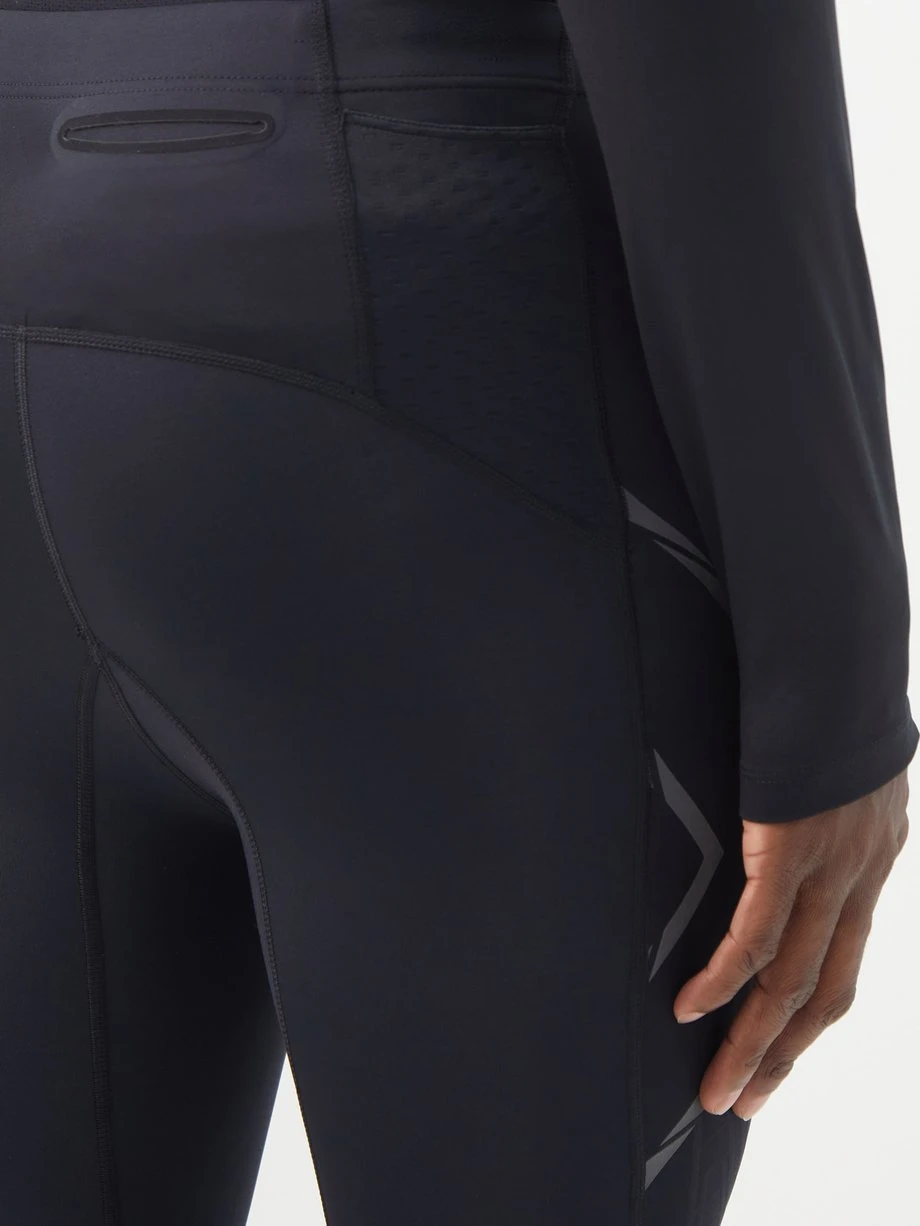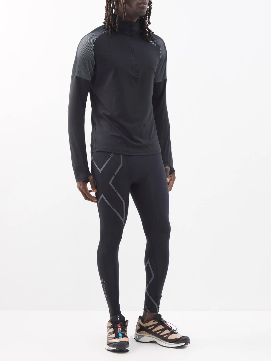 The second-skin fit of 2XU’s black Light Speed compression leggings supports muscle strength and endurance, enabling longer training sessions in colder temperatures.