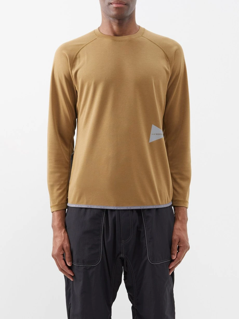 The Power Dry jersey used to craft And Wander’s brown long-sleeved top is highly breathable, moisture wicking and quick drying, making it an ideal choice for athletic training.