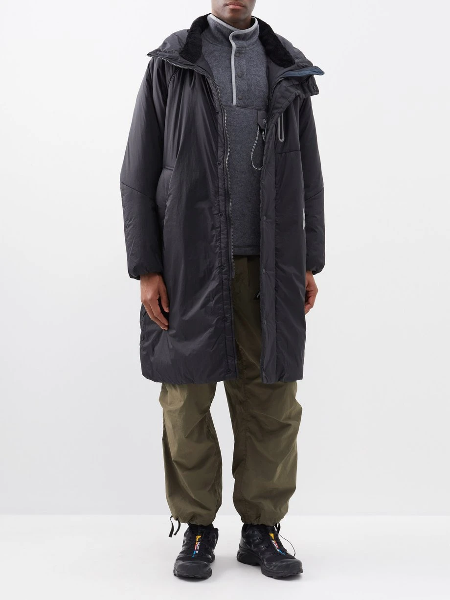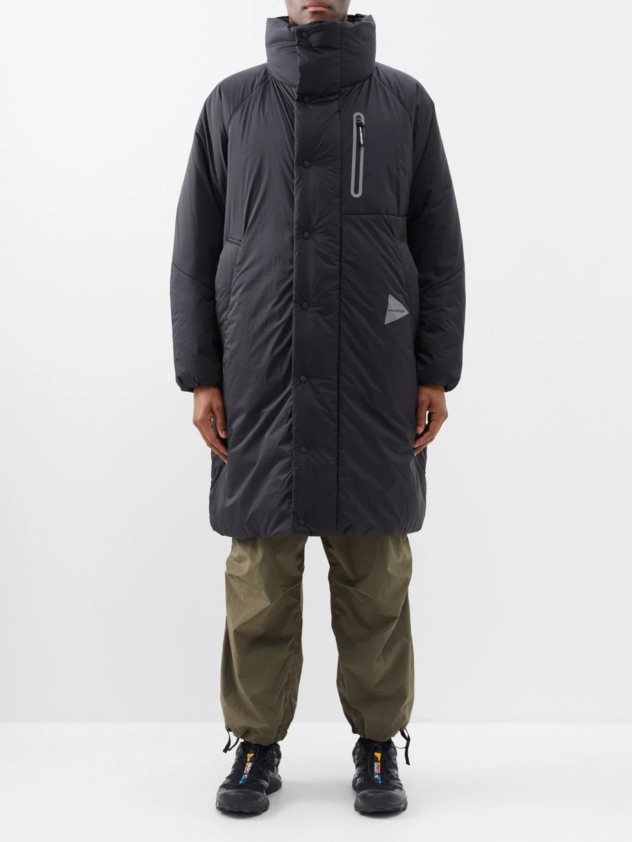 And Wander ensures this black ripstop coat has a heat-retaining finish by padding it with Primaloft insulation and lining the high neck with plush fleece.