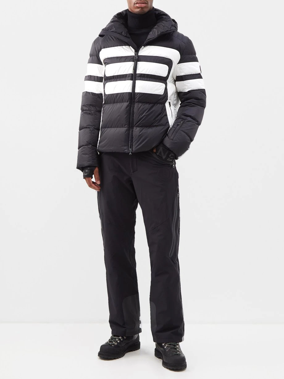 90 years’ worth of alpine expertise underpins each Bogner garment, and this black and white Boaz-D jacket typifies the label’s meticulous approach. Crafted from a lightweight and water-repellent outer shell, it has a detachable mesh-lined hood and showcases a snow gaiter hem with a ski pass pocket, then finishes with a signature sleeve logo patch.