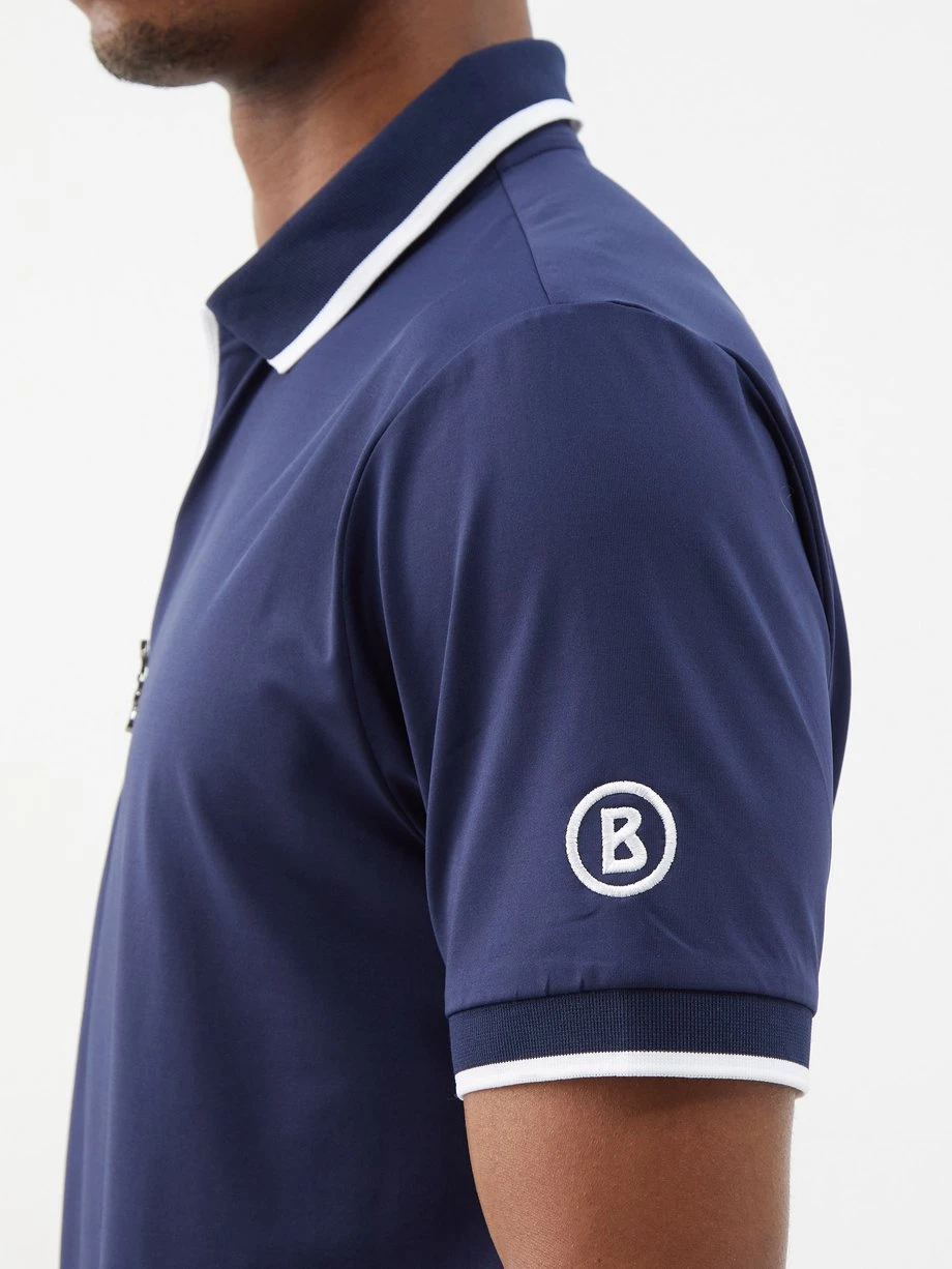Bogner’s navy Cody polo shirt is made from quick-drying performance jersey with a finely ribbed collar and zipped neck, plus a double-stitched hem for long-lasting wear.
