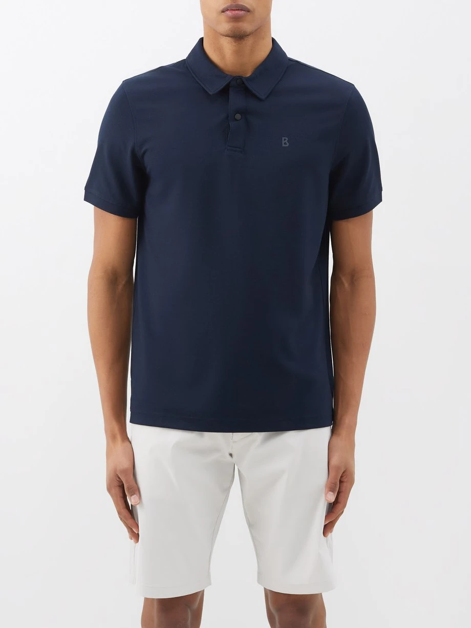 Bogner’s signature performance cotton forms the backbone of this breathable navy Timo polo shirt, crafted with elements of stretch and hallmarked with a printed logo.