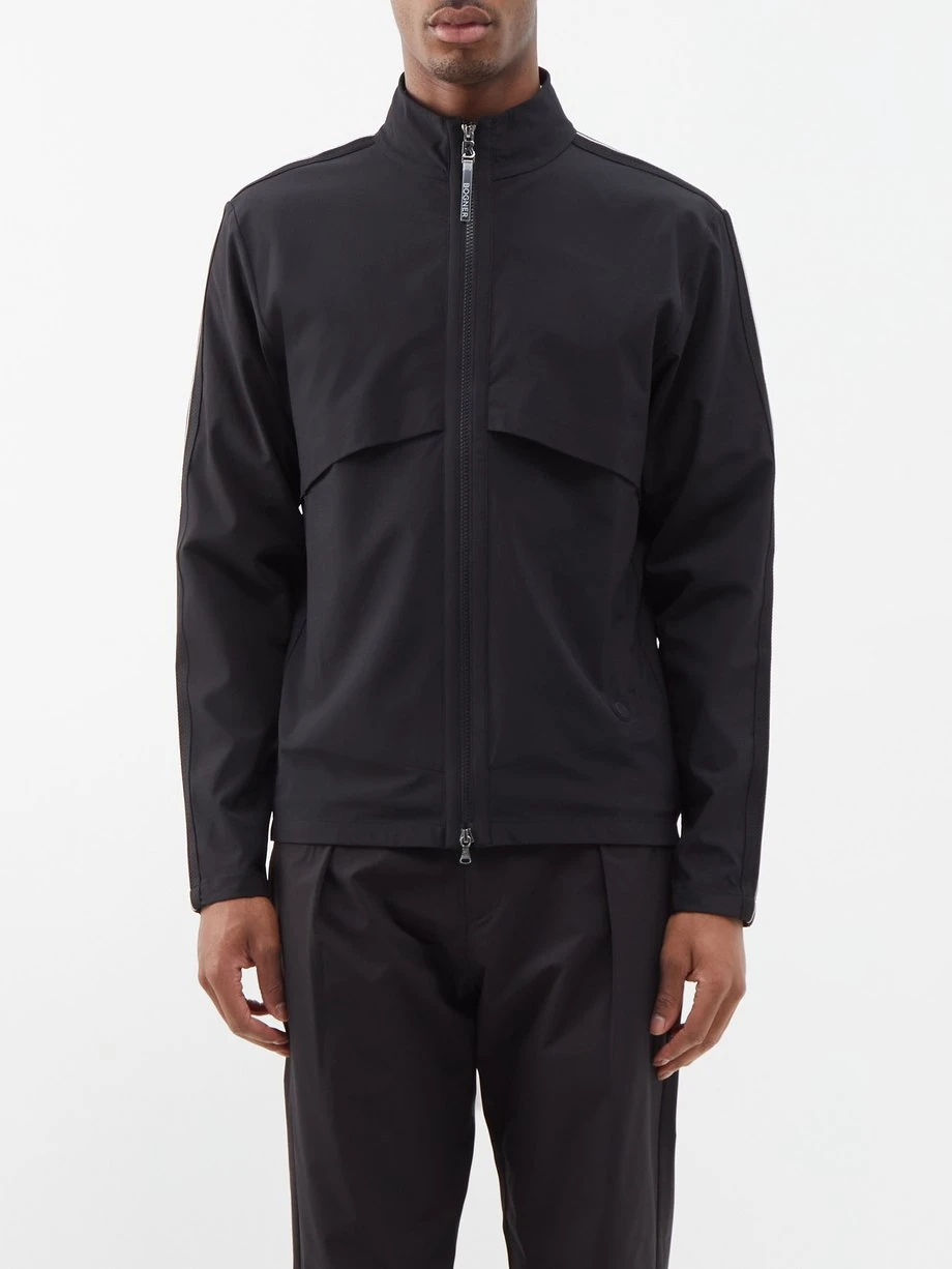 Made from lightweight two-way stretch fabric, Bogner’s black Vernon golf jacket protects against mild wind and rain out on the green.