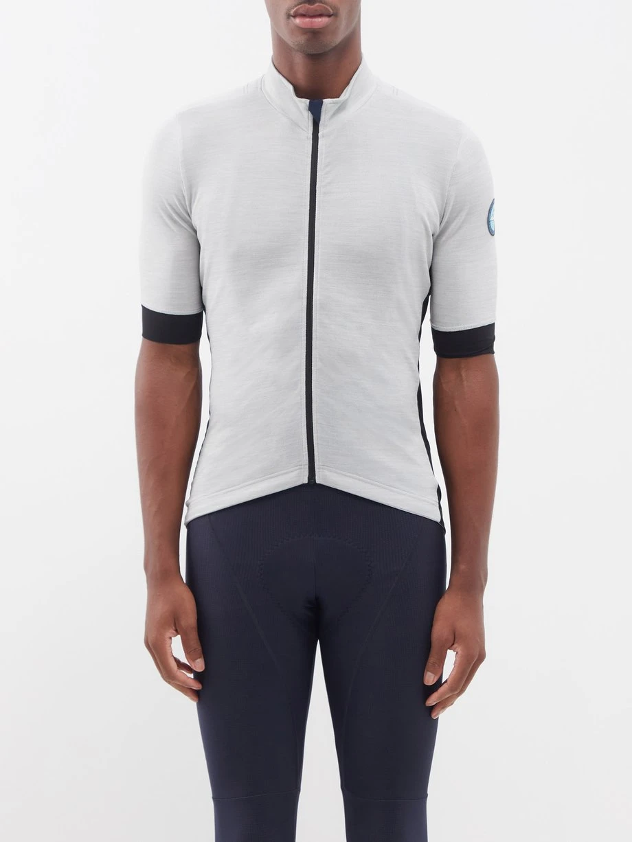 Café du Cycliste’s lightweight grey Eglantine jacket is made from naturally thermo-regulating merino-blend jersey, infused with moisture-wicking, shape-retentive and odour-resistant properties. The slimline shape has a practical V-cut hemline to avoid bunching and it’s equipped with easy-reach back pockets.