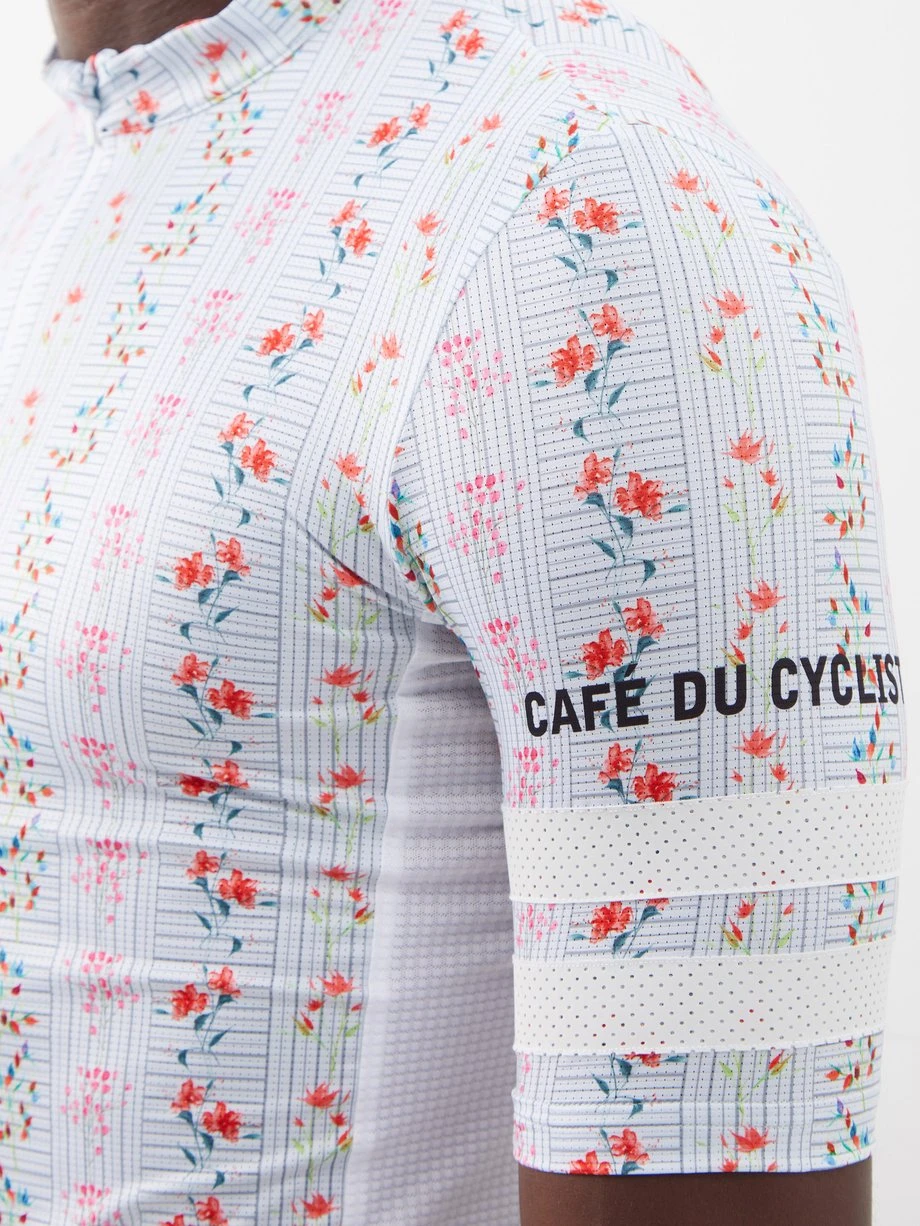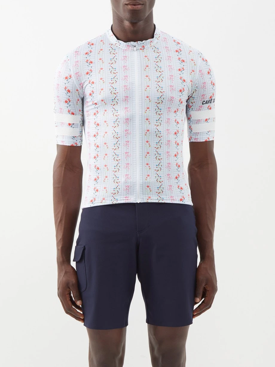 With excellent airflow and moisture-release, Café du Cycliste’s centifolia-print Floriane cycling jersey is ideal for warm climes, and cut slighty longer for added sun protection.