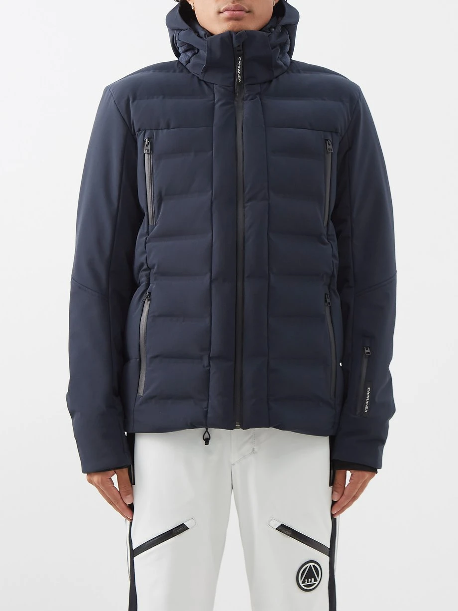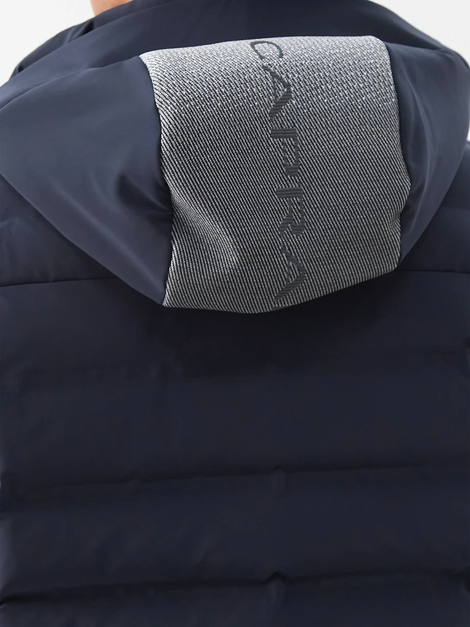 The down-filled chamber construction of Capranea’s navy Avaloq II jacket makes it optimally warm while still being lightweight. It’s shaped from four-way-stretch shell and equipped with taped zips at the front and pockets to seal out moisture, then finished with a padded detachable hood for extra protection from the elements.