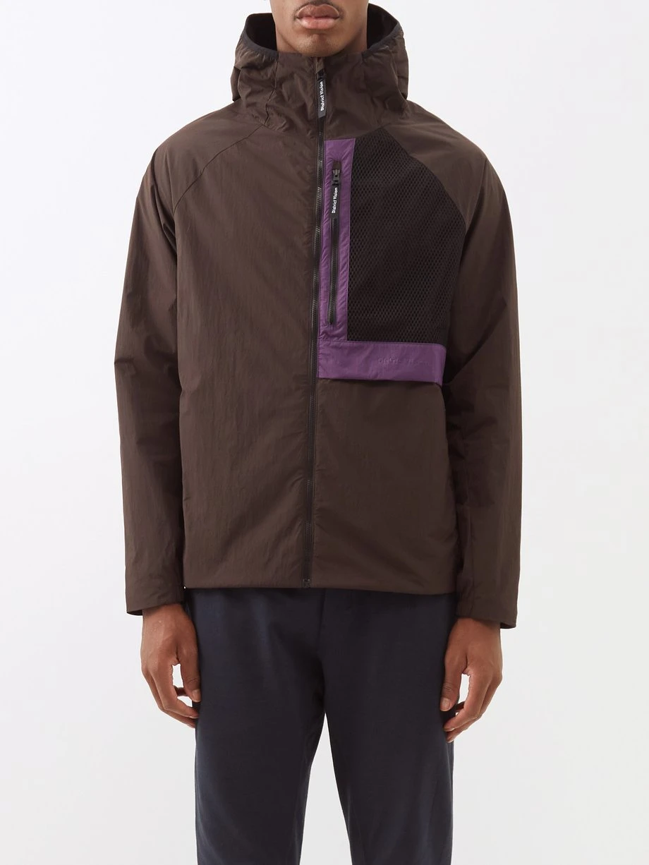 Ideal for hiking, District Vision’s brown hooded Puja jacket is expertly crafted from water-resistant recycled fibres filled with ultra-lightweight Primaloft® insulation.