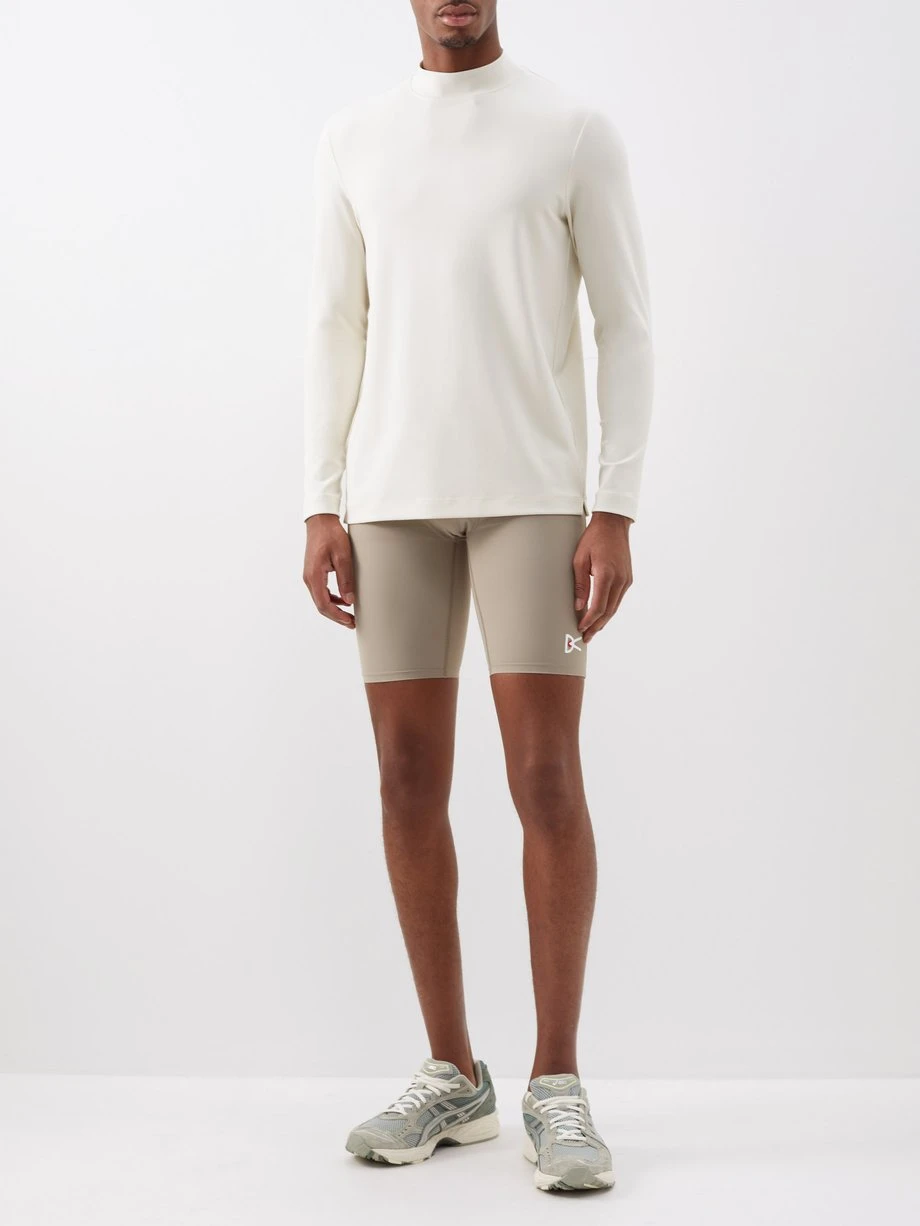 Made from four-way stretch jersey for an ergonomic fit, District Vision’s stone-beige TomTom half tights are made from recycled fibres developed to be moisture-wicking and anti-odour.