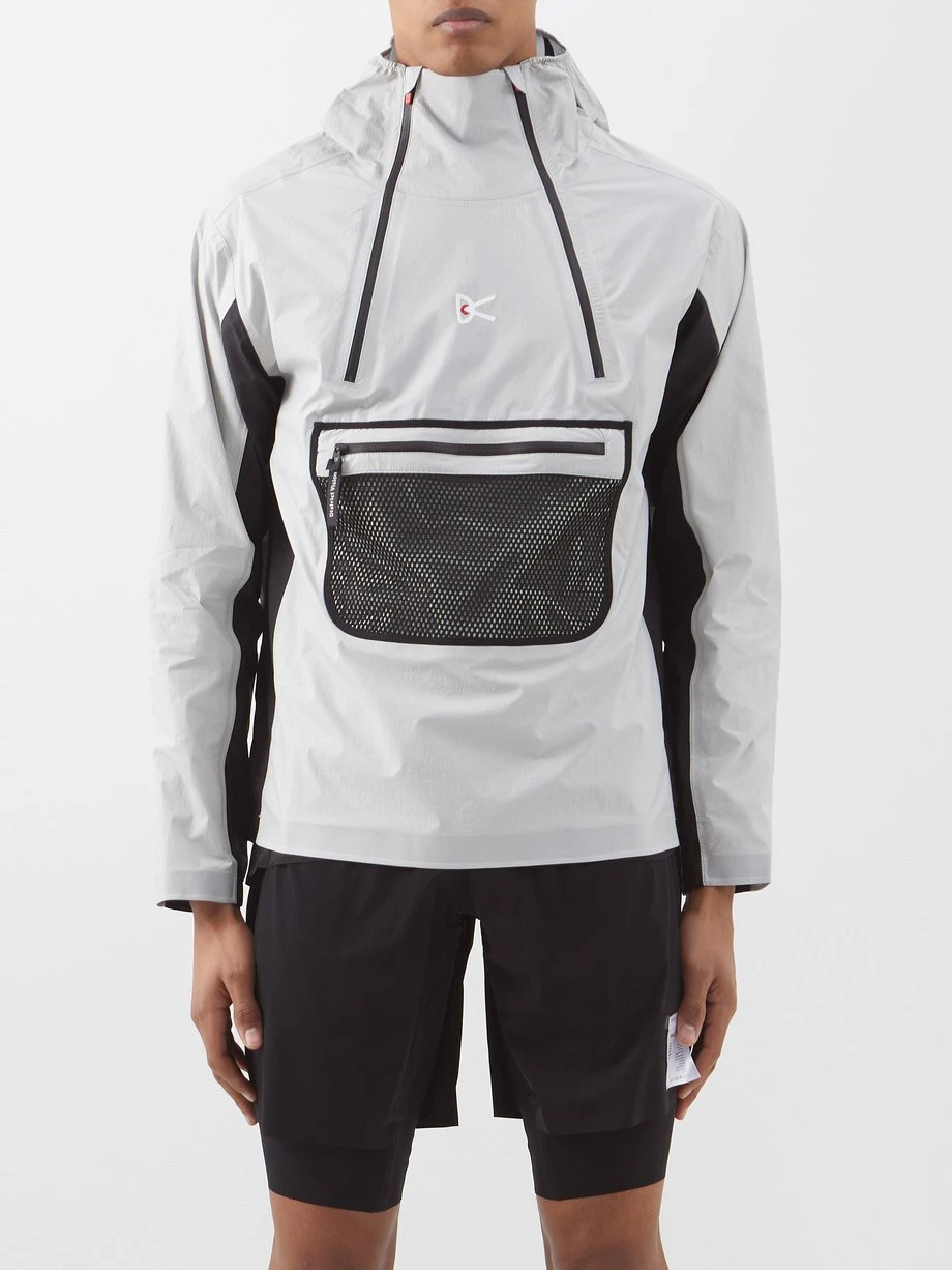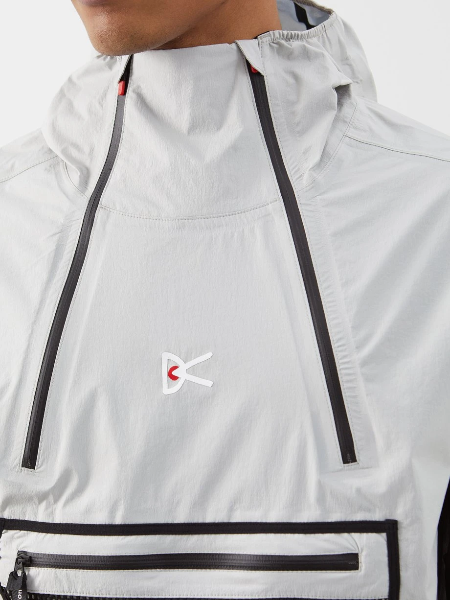 District Vision offers streamlined outerwear that protects from the elements such as this grey Vassa jacket, made from water-repellent recycled fibres fitted with waterproof zippers.