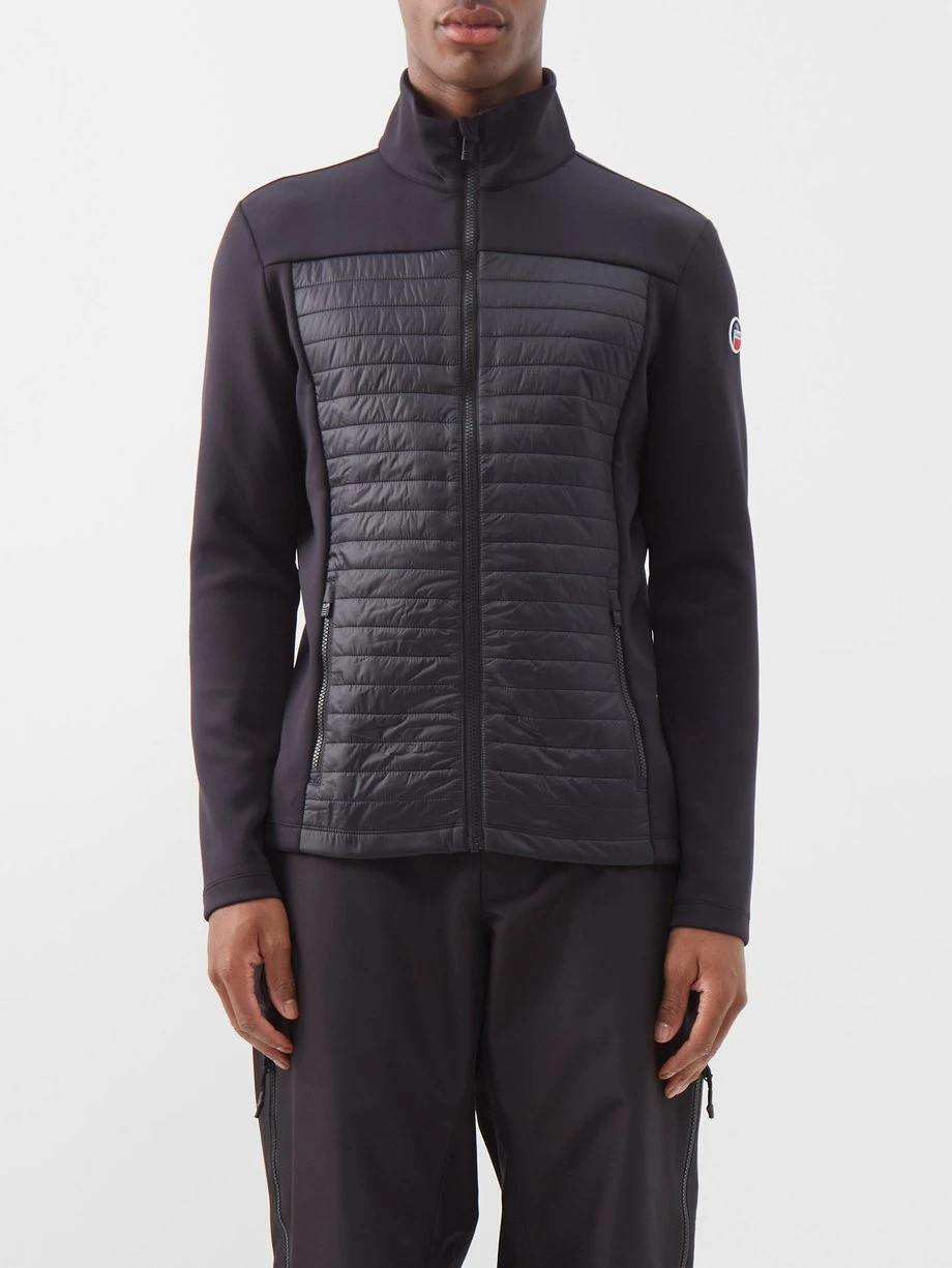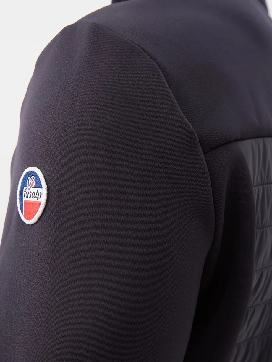 Fusalp’s black Aspon II mid-layer jacket is crafted from stretch softshell with quilted front and back panelling, following a slim fit ideal for layering. It’s equipped with secure zipped pockets and a high neck, complete with a mouthguard to prevent irritation.