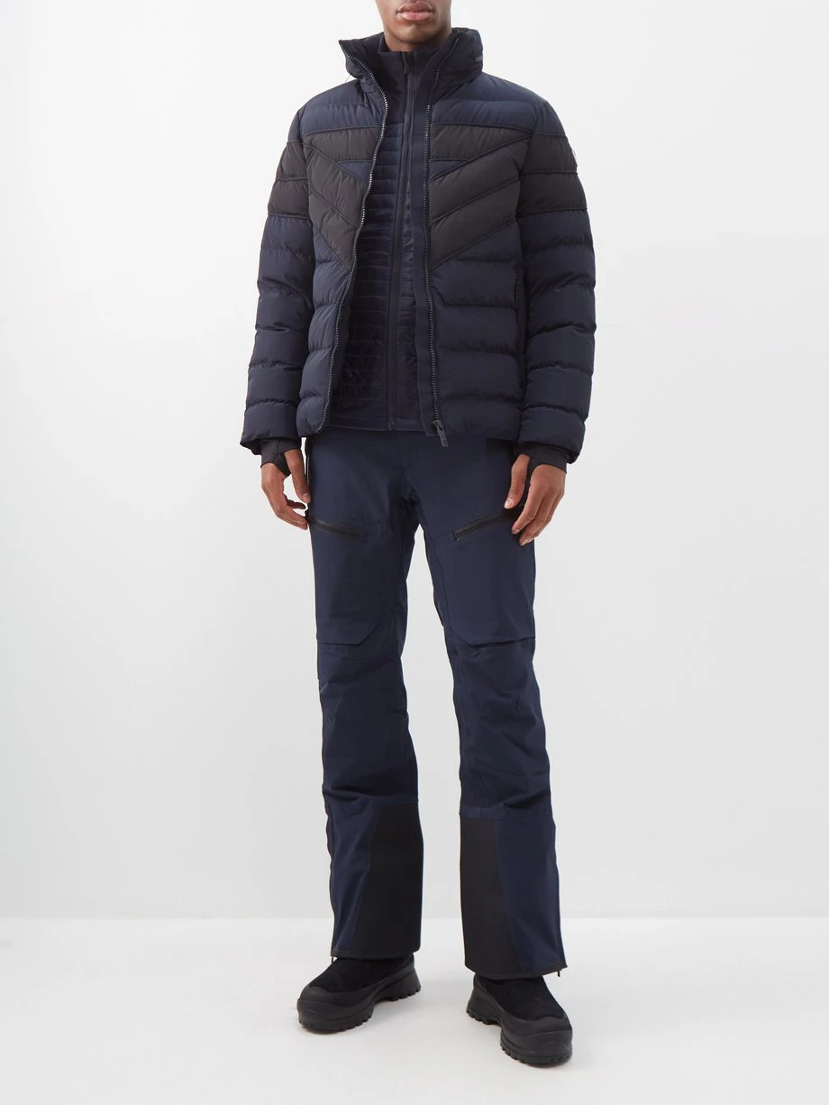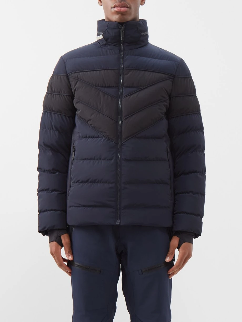 Built for robust warmth on the mountain, Fusalp’s navy Fernand jacket is breathable and waterproof for long-lasting protection from the elements. The quilted construction is elevated with a black chevron motif and insulated with bio-sourced Sorona® fibres.