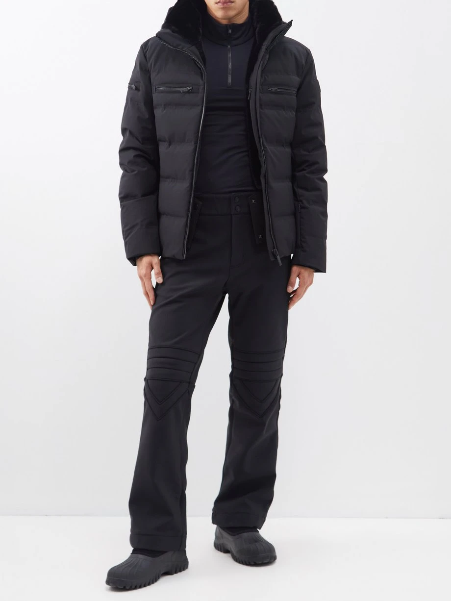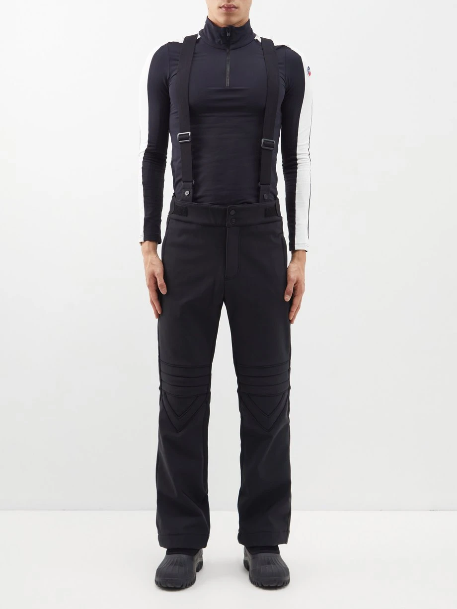 Made from bonded, breathable softshell membrane, Fusalp’s black Maurice ski trousers are designed for overboot wear in deeper snow conditions. They’re fitted with optional braces and reinforced knee panels for extra protection.