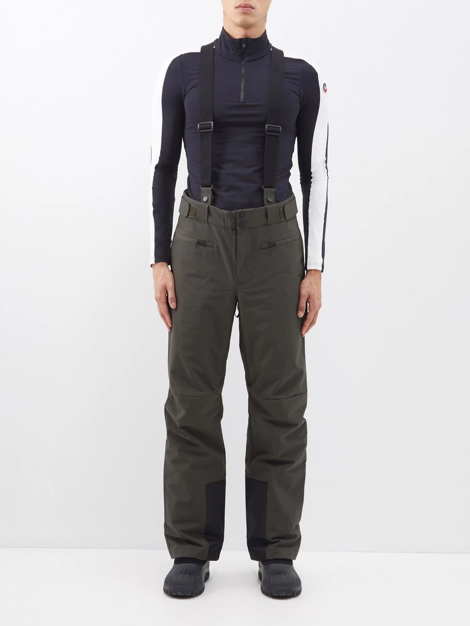 Fusalp’s skiwear expertise translates to the ergonomic craftsmanship of these khaki-green Tomaso ski trousers. The high-rise silhouette is cut from a water-repellent, heat-sealed fabric fitted with detachable suspenders, adjustable waist tabs and reinforced panelling at the cuffs.
