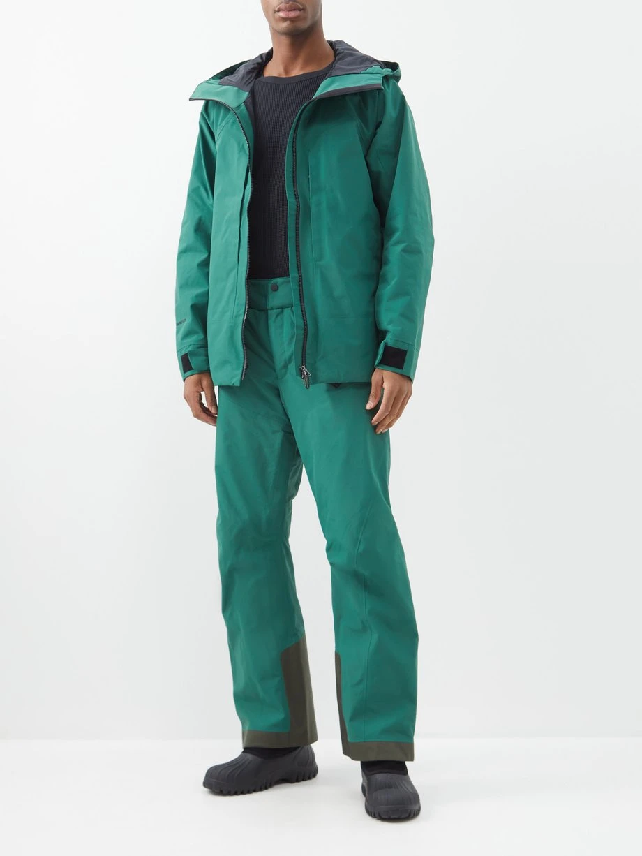 Expertly constructed for high-altitude pursuits, GOLDWIN’s turquoise-green ski trousers have a two-layer construction for weather-resistant protection. It’s made from GORE-TEX™ nylon shell with an adjustable waist, multiple zip pockets and snow gaiters at the cuffs to keep snow out.