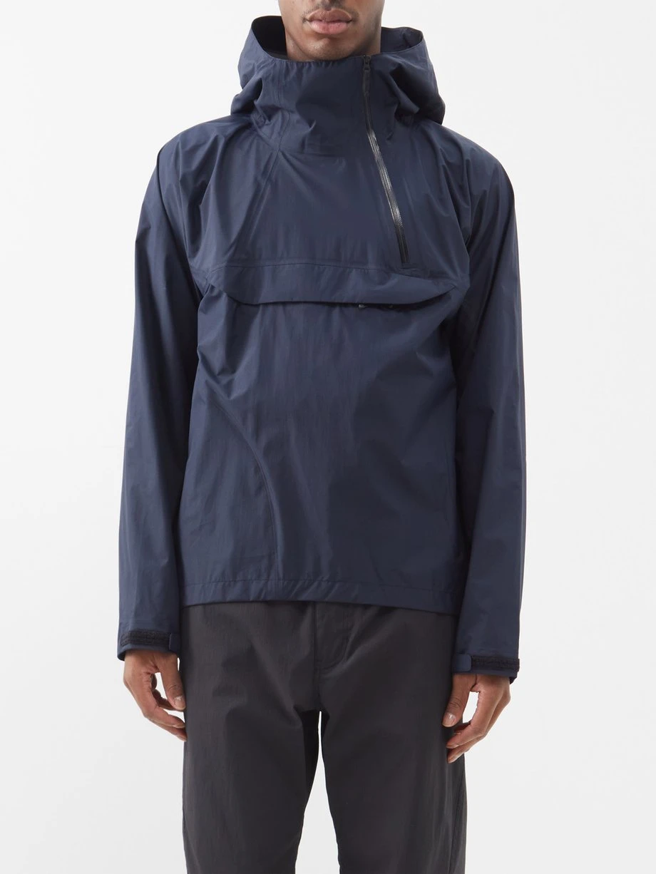 Made from a waterproof PERTEX™ ShieldAir nylon shell, GOLDWIN’s navy half-zip jacket is cut to a relaxed silhouette for ease of movement and flexibility.