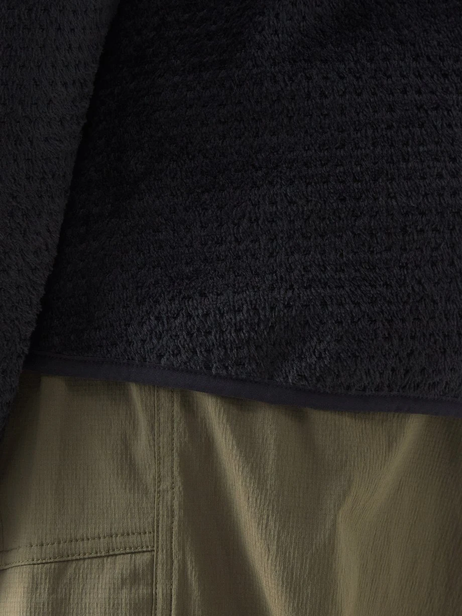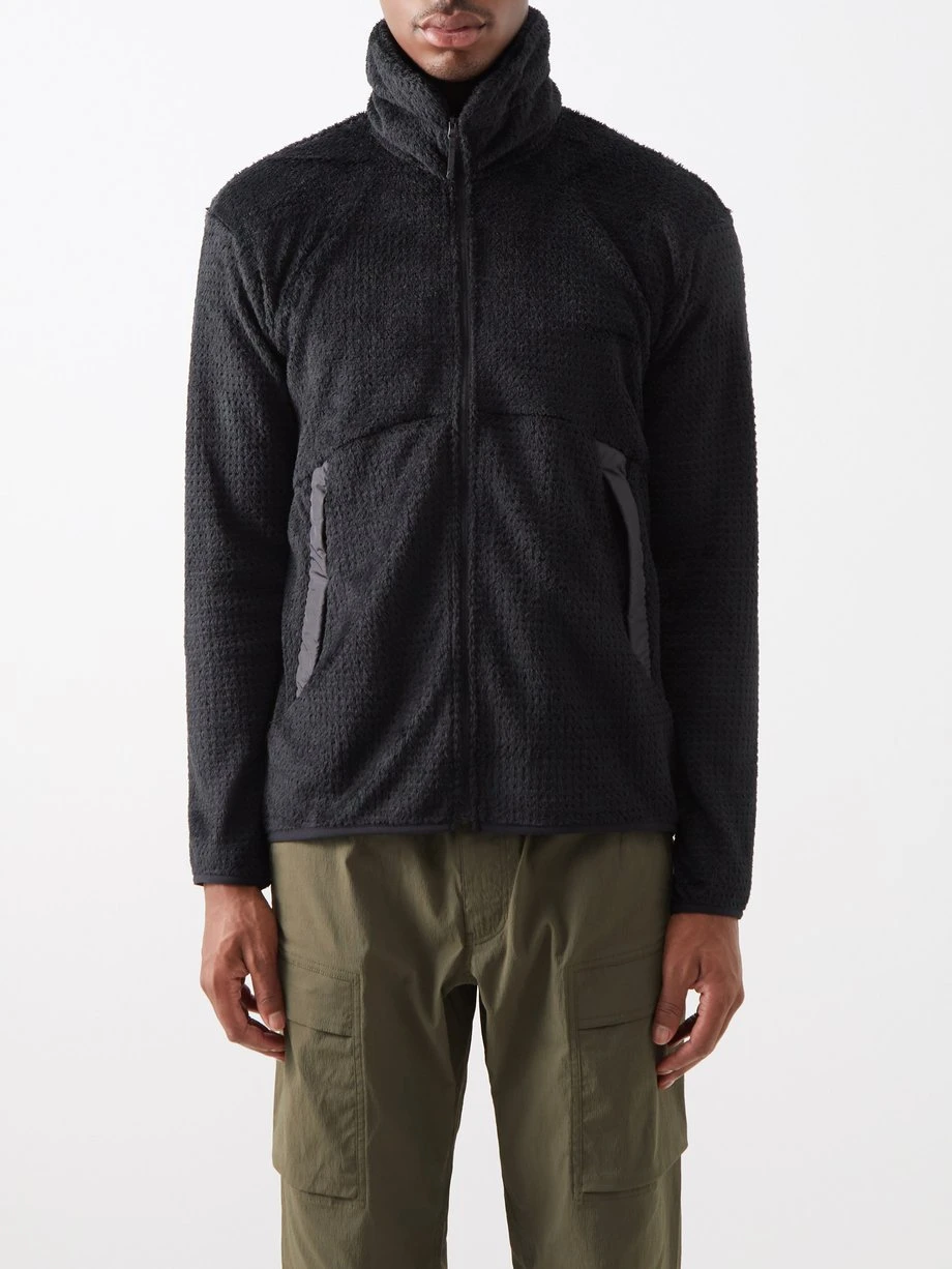 Ideal for outdoor adventures, GOLDWIN’s black fleece jacket is rendered in high loft Polartec knit that’s breathable, comfortable and insulating in equal measure.