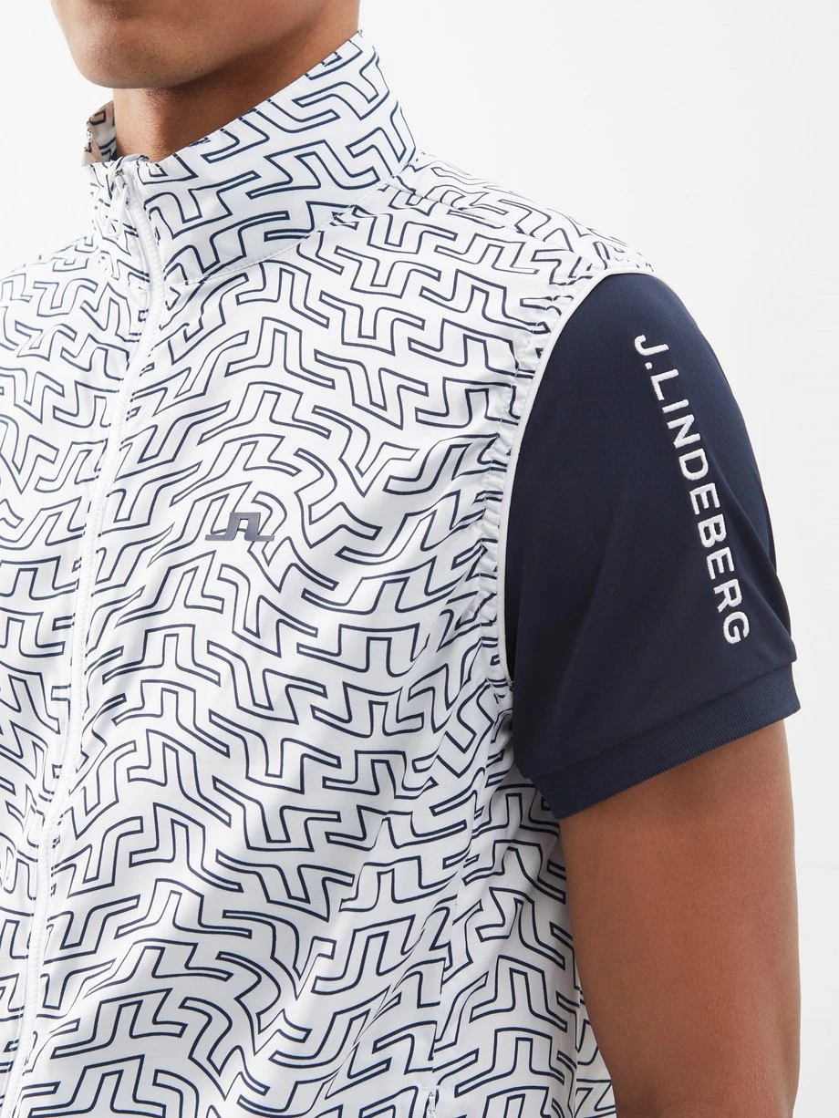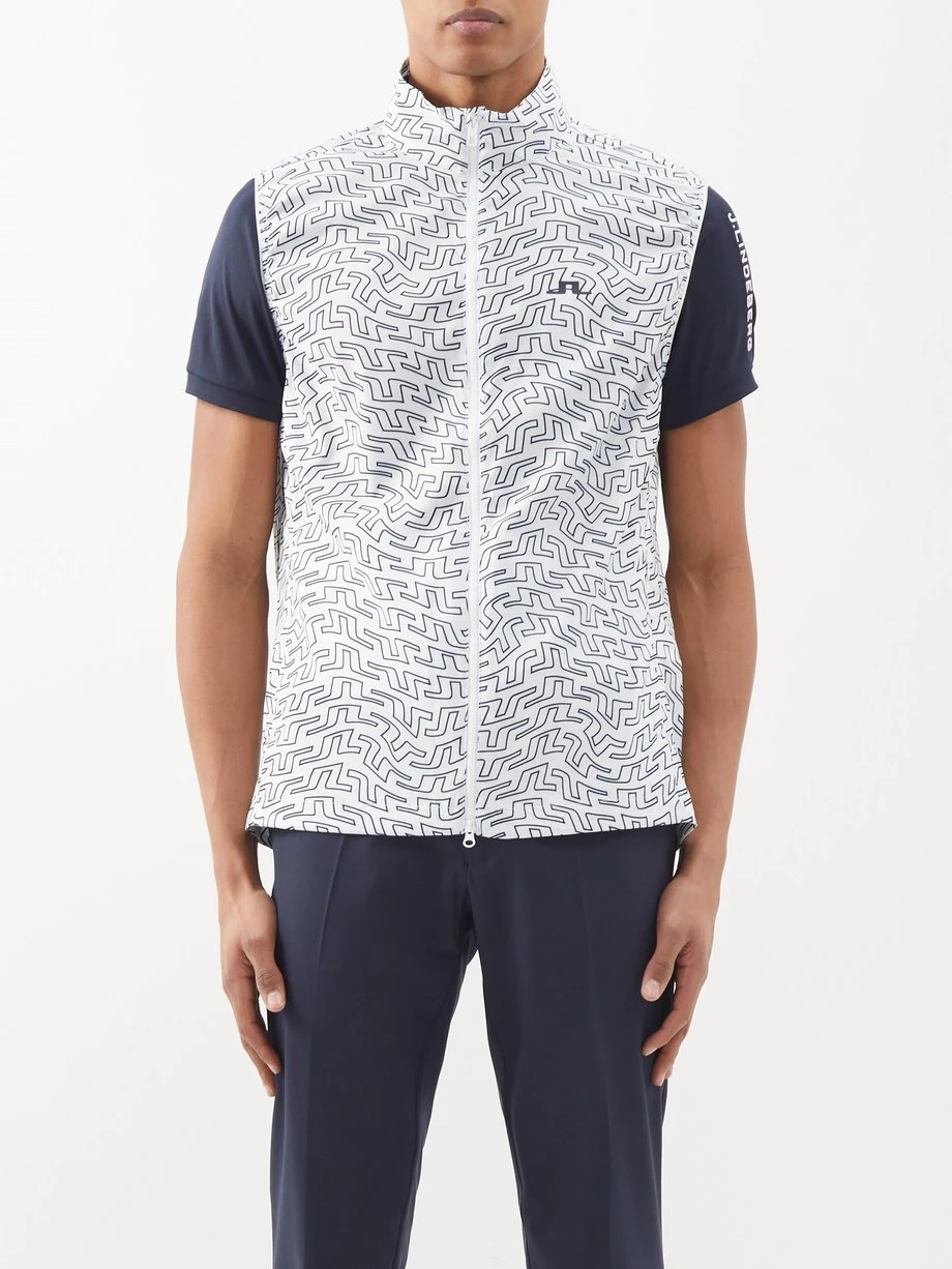 J.Lindeberg’s white logo-print Ash gilet is made from OEKOTEX-certified water-repellent and windproof fabric and can be packed into a pocket for easy storage.