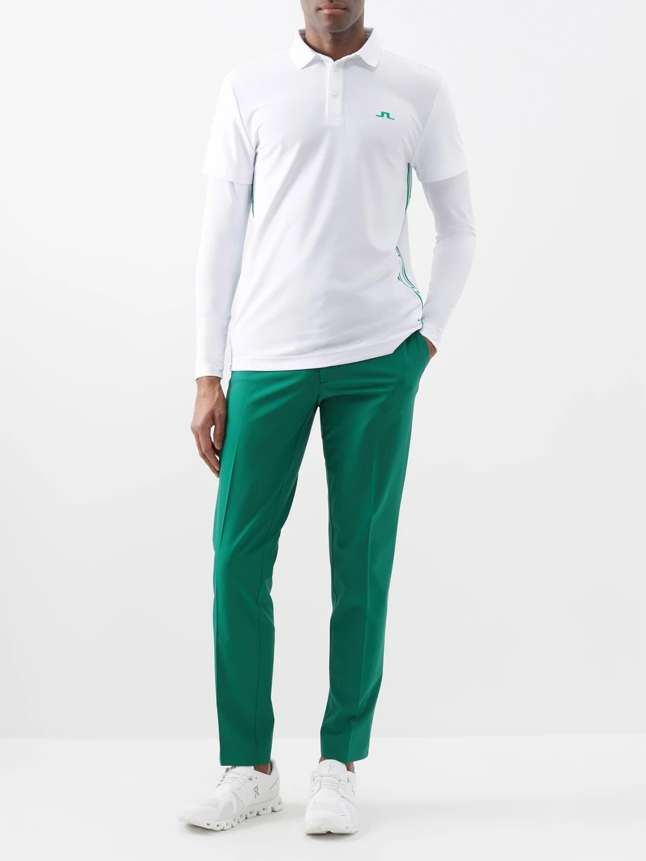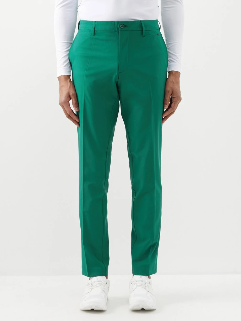 J.Lindeberg’s green Ellot trousers are made from a stretch-technical shell for a good range of motion while on the pitch, highlighting the label’s sportswear expertise.