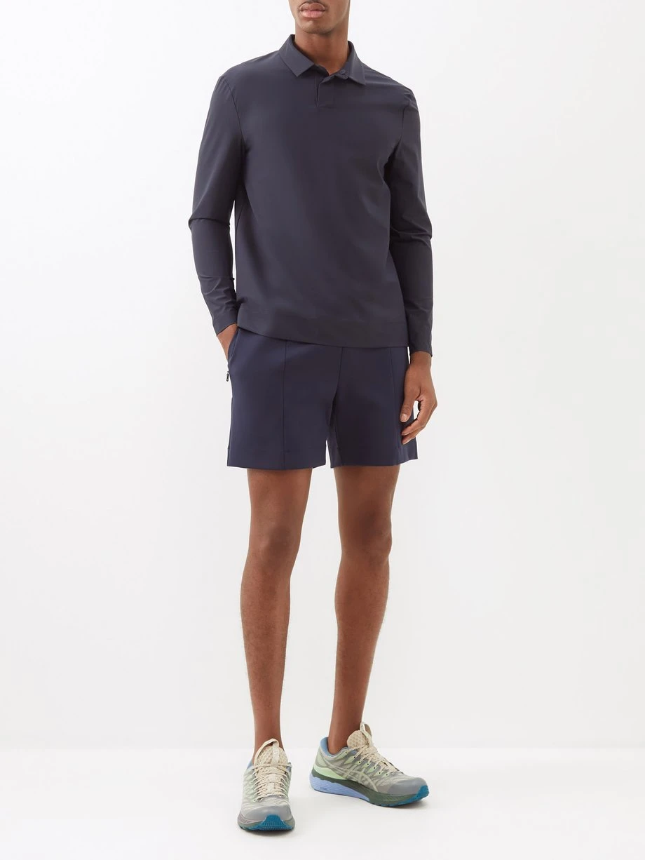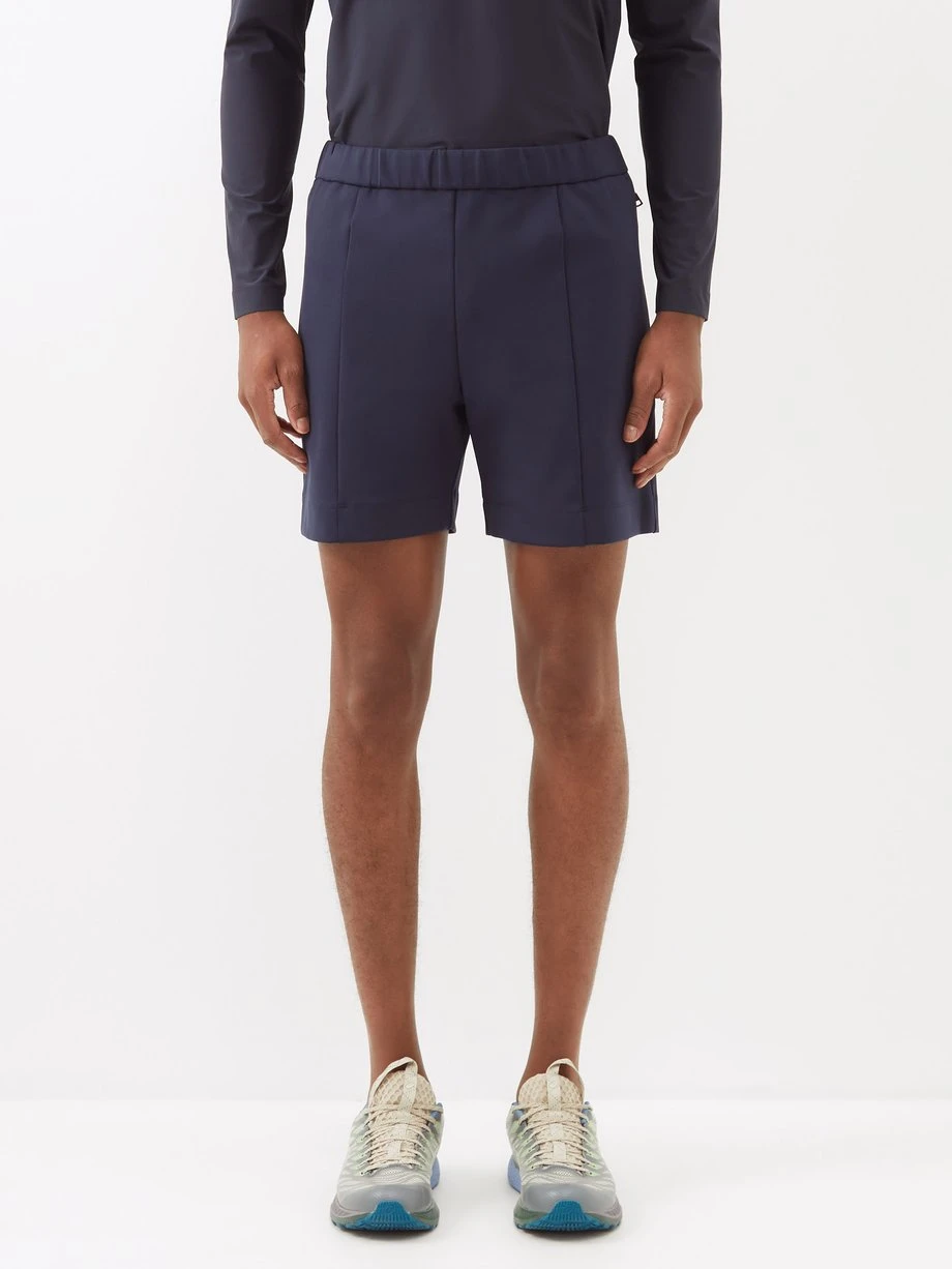 Jacques’ technical expertise underpins these navy Tennis shorts, constructed from stretch jersey with front pleats and concealed side zip pockets framed by an elasticated waist.