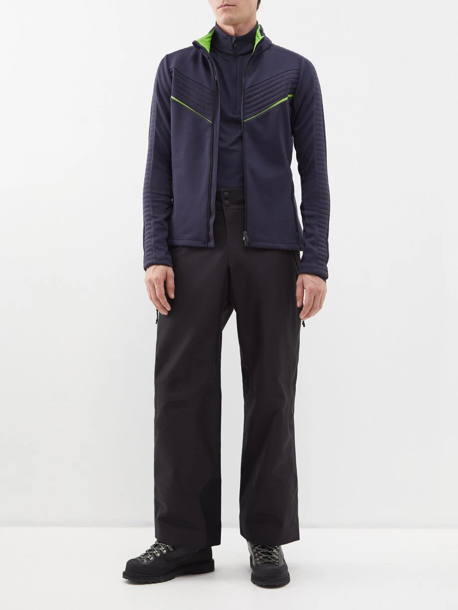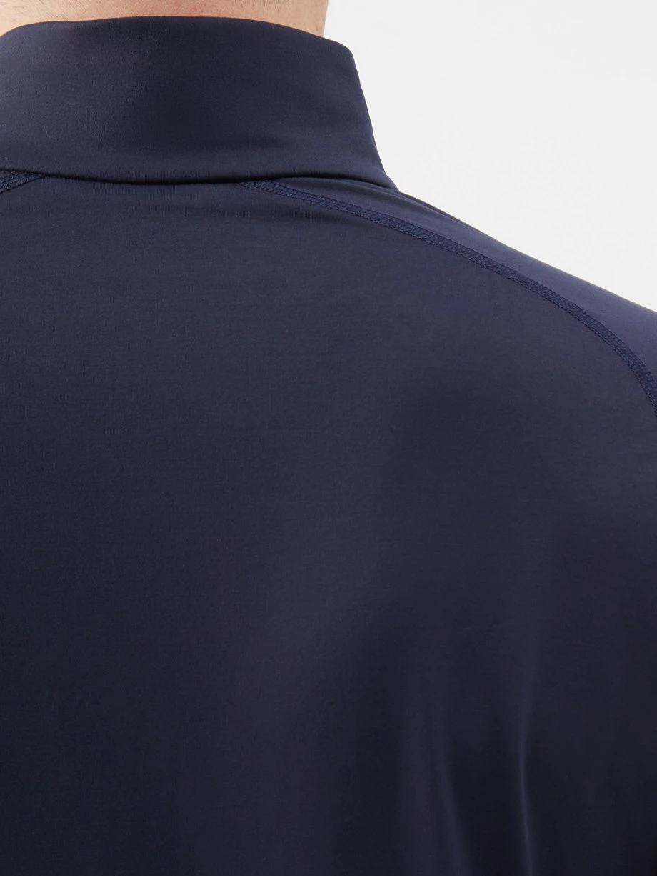 KJUS uses lightweight jersey with moisture-wicking, quick-drying and breathable properties to craft this navy mid-layer Feel top, cut to a slim fit for easy layering. It is fitted with raglan sleeves, a waterproof chin guard and flat seams to allow for ultimate comfort on the slopes.