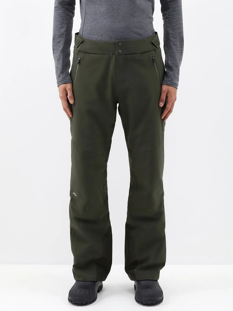 KJUS’s olive-green Formula ski trousers are crafted from softshell with four-way stretch and 3D technology that give them a great shape. Crafted with KJUS FAST Thermo Core insulation, they regulate your temperature on the slopes while keeping you warm and dry, and the high-rise waist and adjusters allow for a customised fit.