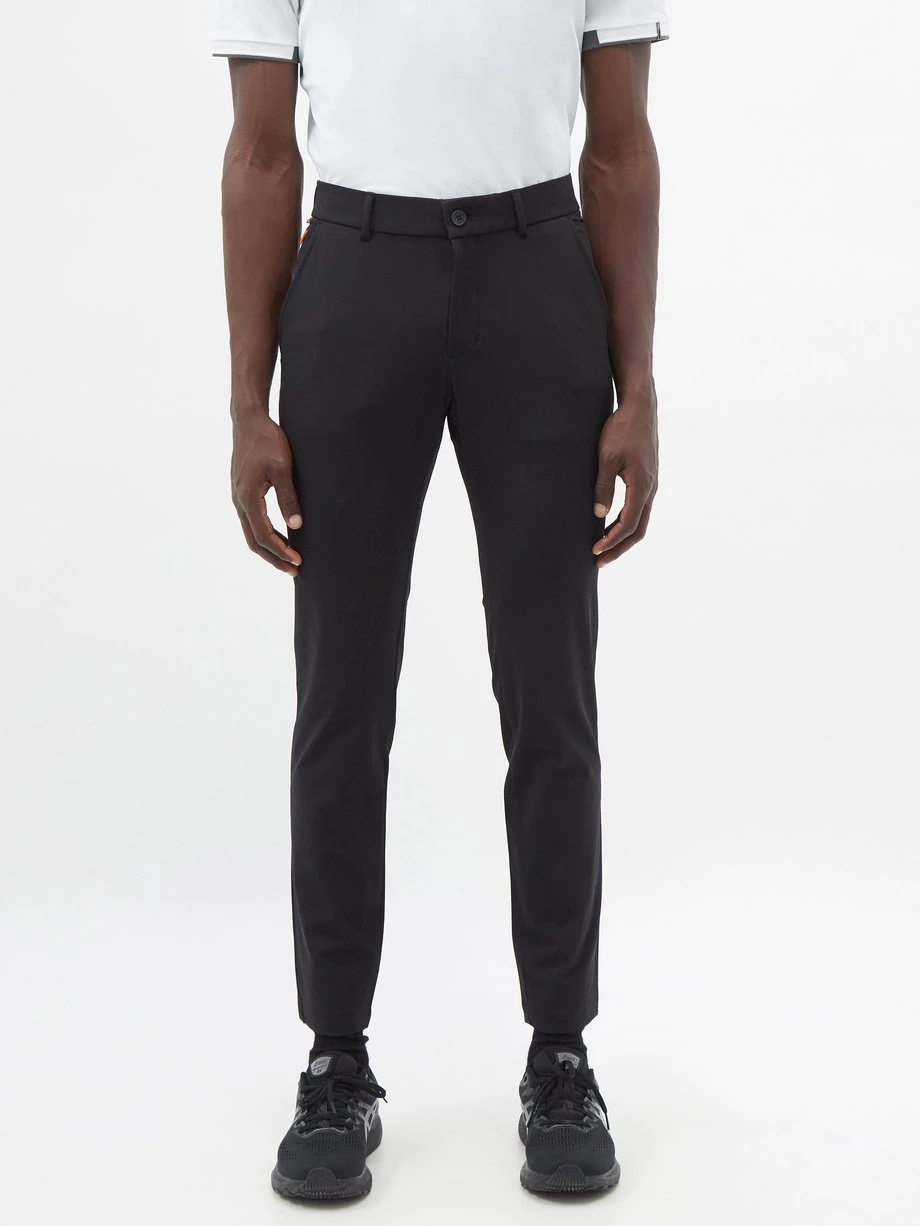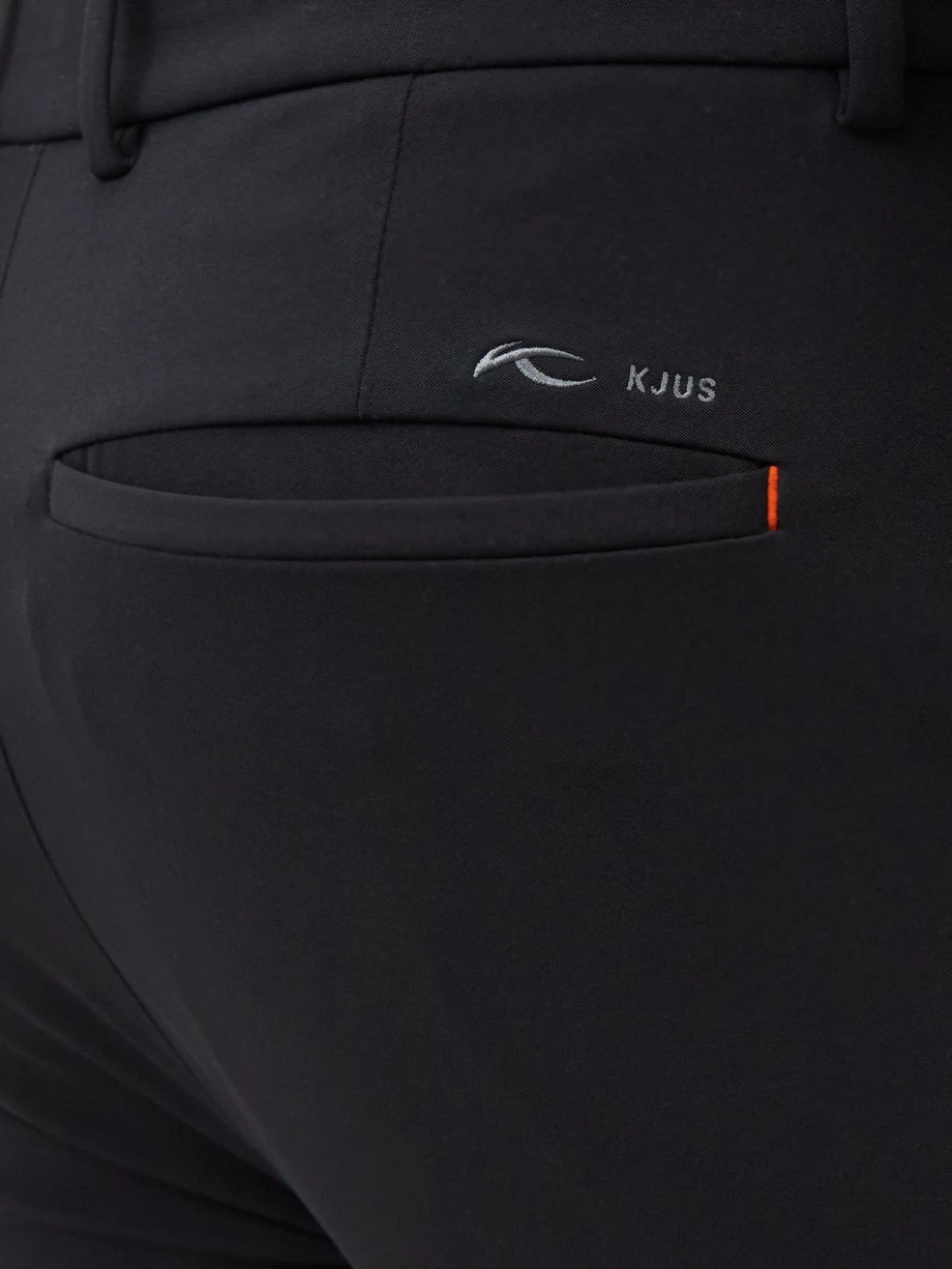 KJUS’s black Iver trousers are tailored from a stretch-twill and have an embroidered logo at the back with a coral stripe.