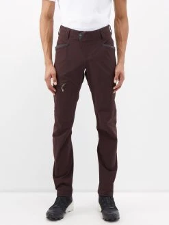Klättermusen’s maroon-brown Levitend trousers have been meticulously tested in the wild to ensure they will withstand adverse weather conditions. They are made from windproof softshell with asymmetric zipped pockets and pre-bent knees for unrestricted movement.