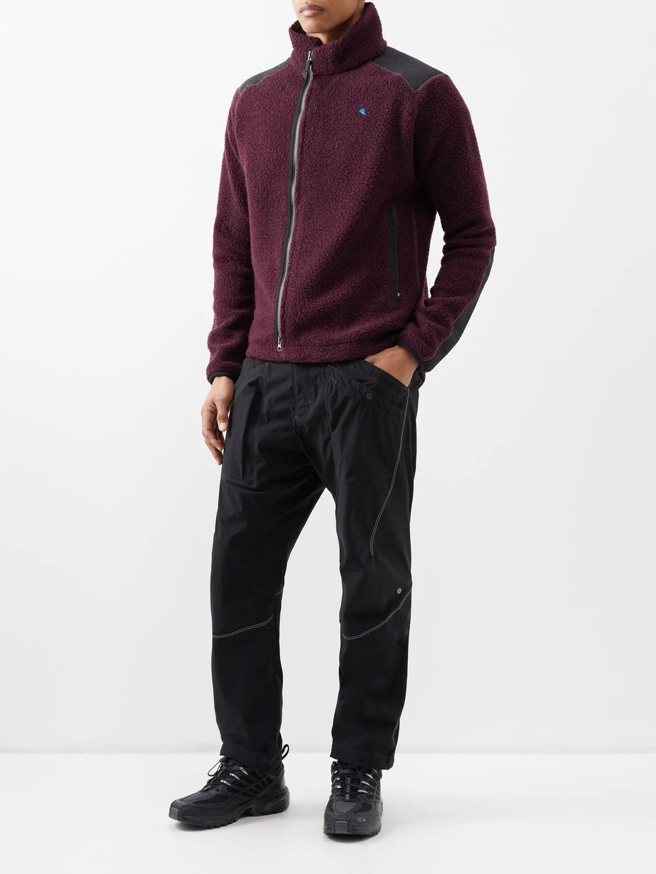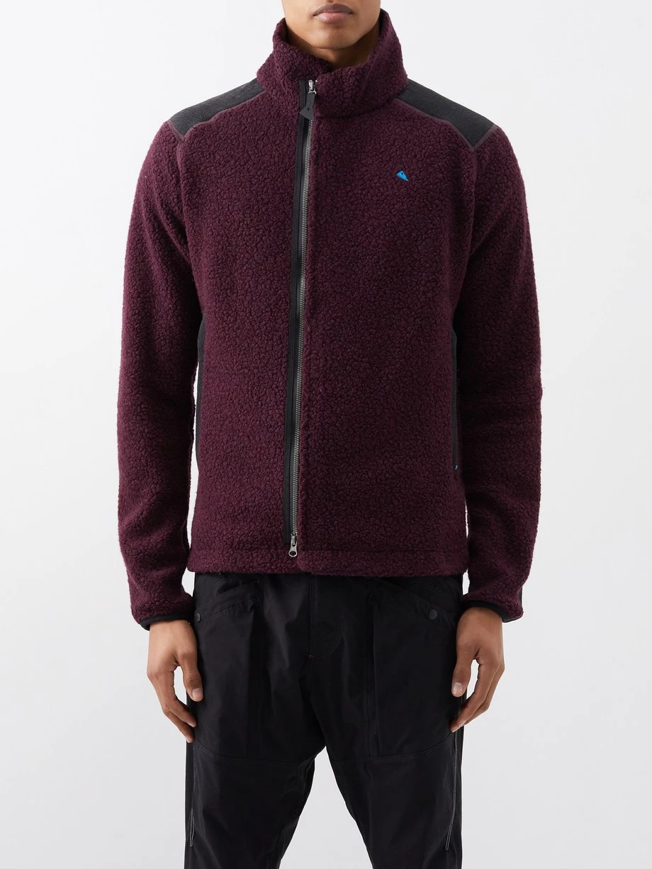 Klättermusen’s red Skoll fleece jacket is cut to an overlapping collar with a zip that goes partially up the chin for maximum comfort and warmth.