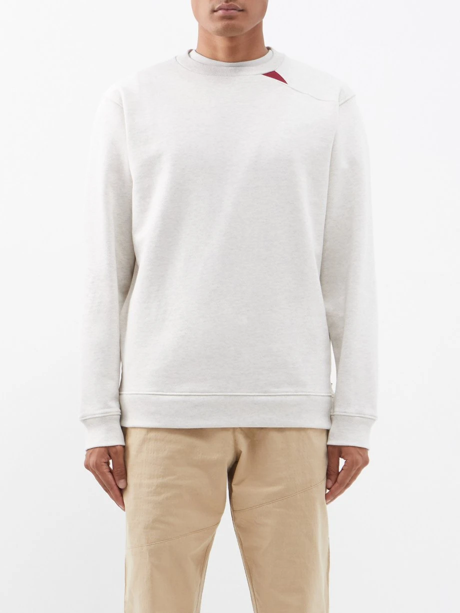 Klättermusen’s cosy but minimalist beige sweatshirt is knitted with a chevron pattern for an alpine feel, then finished with a crew neckline.