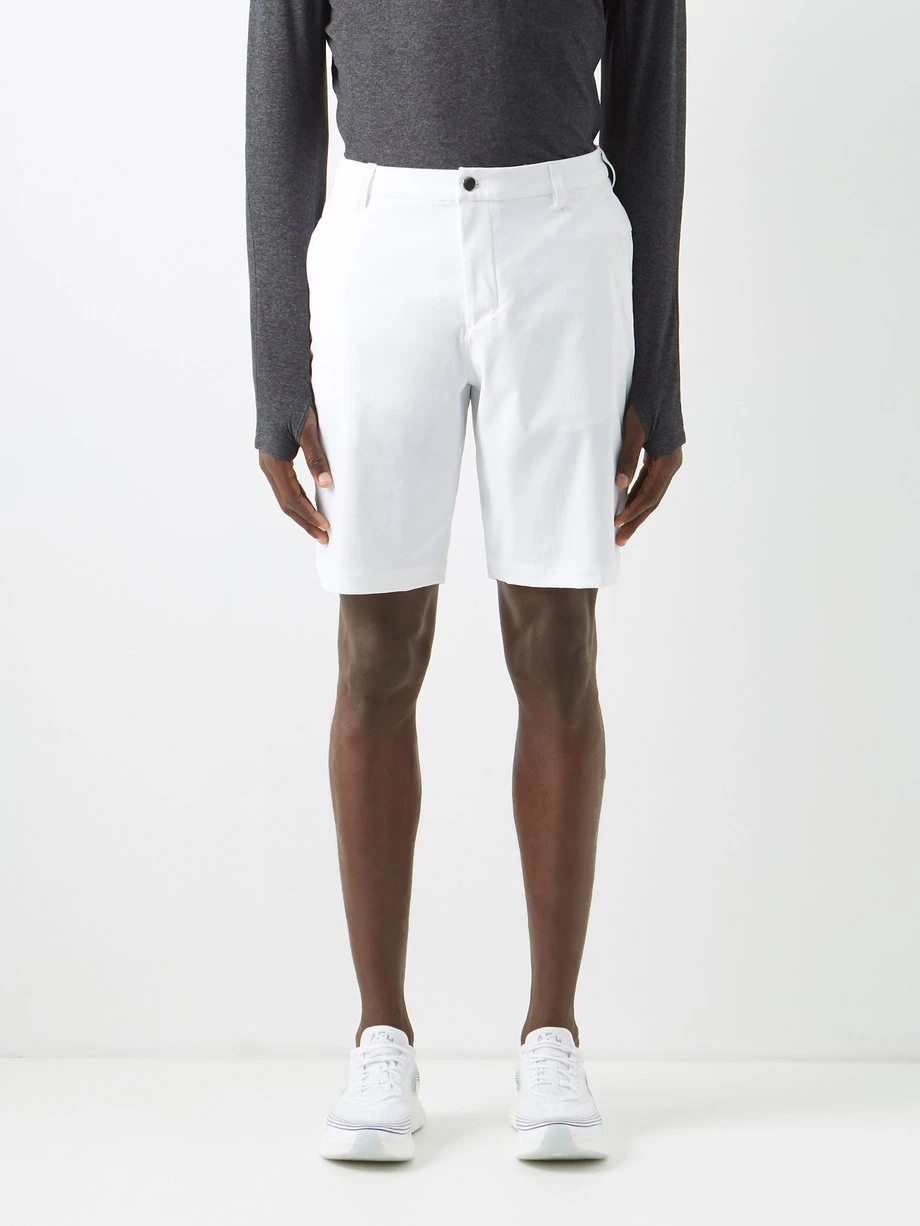 Cut from technical stretch nylon, lululemon’s white Commission golf shorts fit to a high waist and long leg with a water-resistant finish.