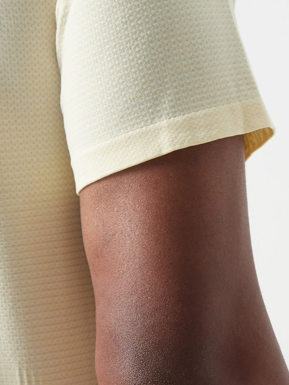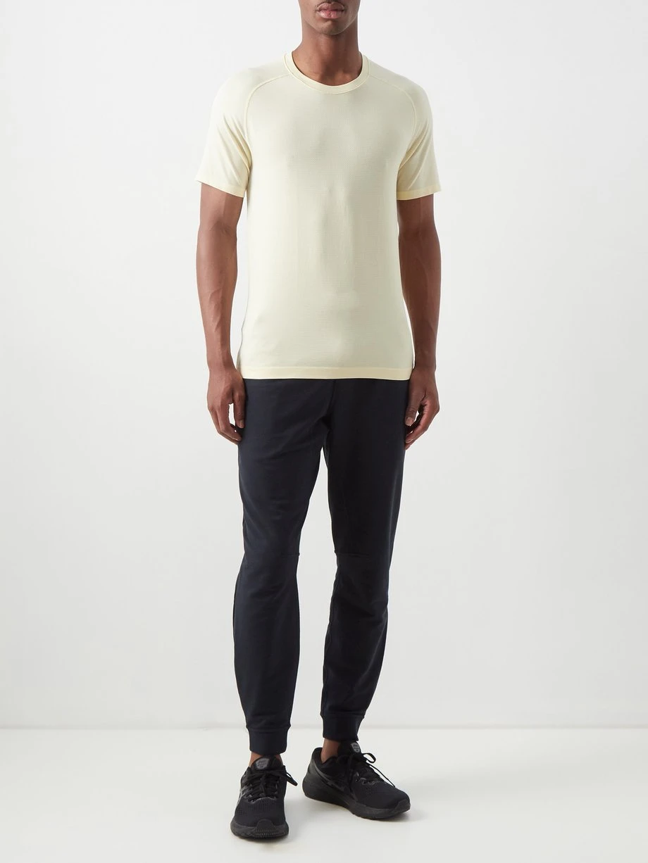 Lululemon’s moisture-wicking pale-yellow Metal Vent Tech T-shirt is shaped with a seamless construction for comfort-focused training and is fitted with raglan sleeves for ease of movement.
