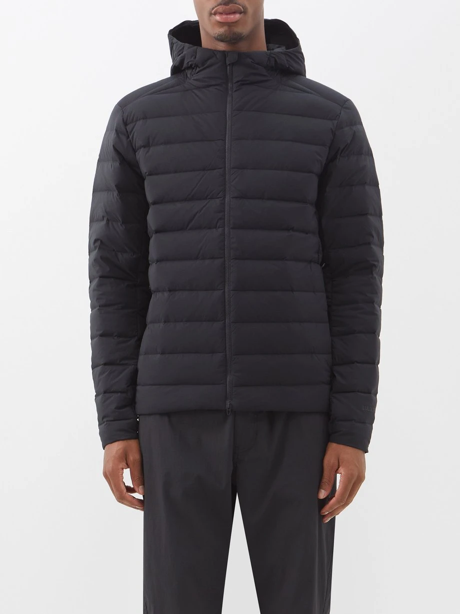 This black Navigator hoodie from Lululemon is filled with insulating goose down and feather and equipped with a quilted hood and zipped pockets.