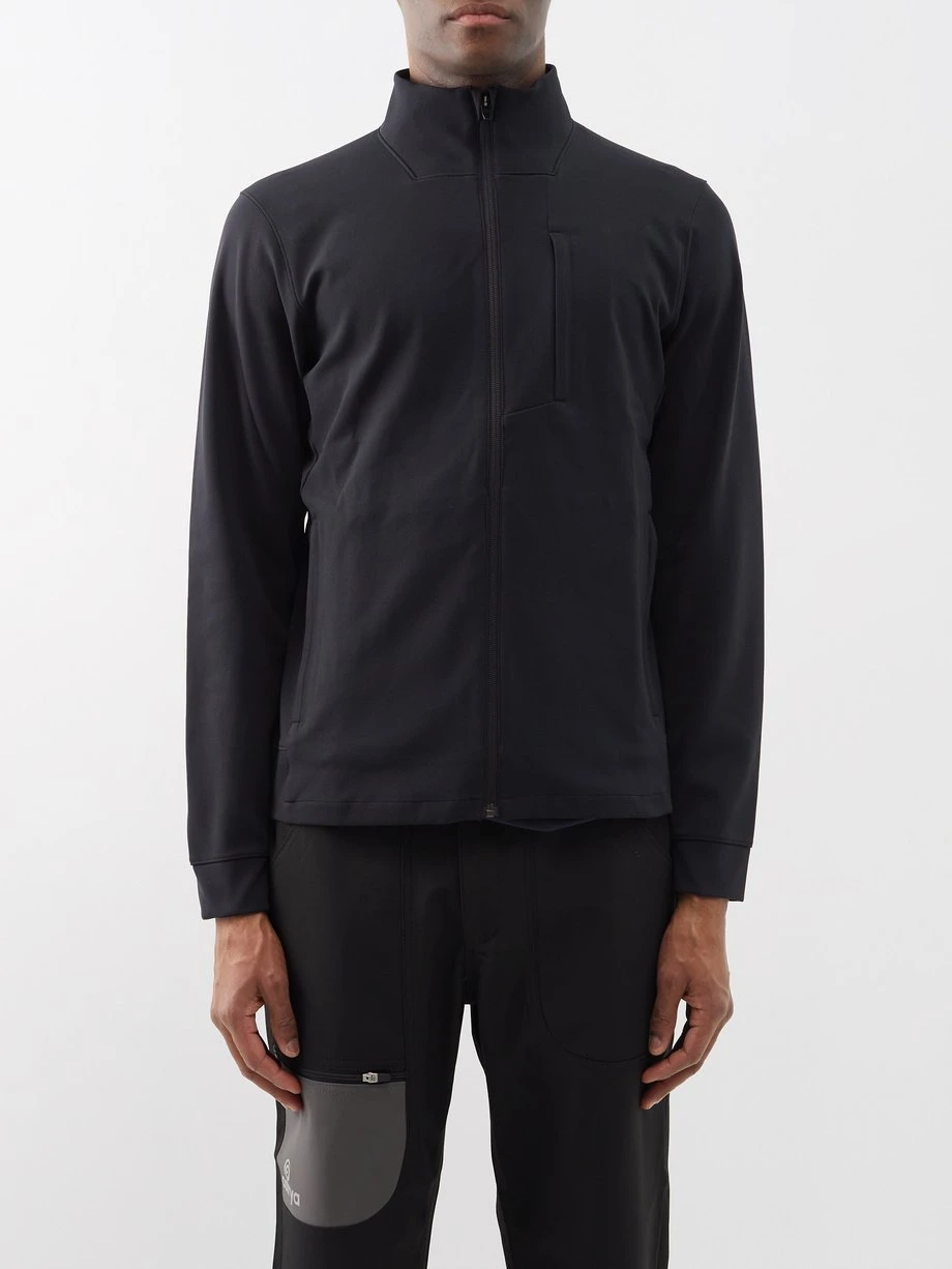 The streamlined fit of Lululemon’s black Sojourn jacket incorporates pockets for your keys, cards and a phone sleeve, and is made from lightwight, moisture-absorbent Warpstreme™.