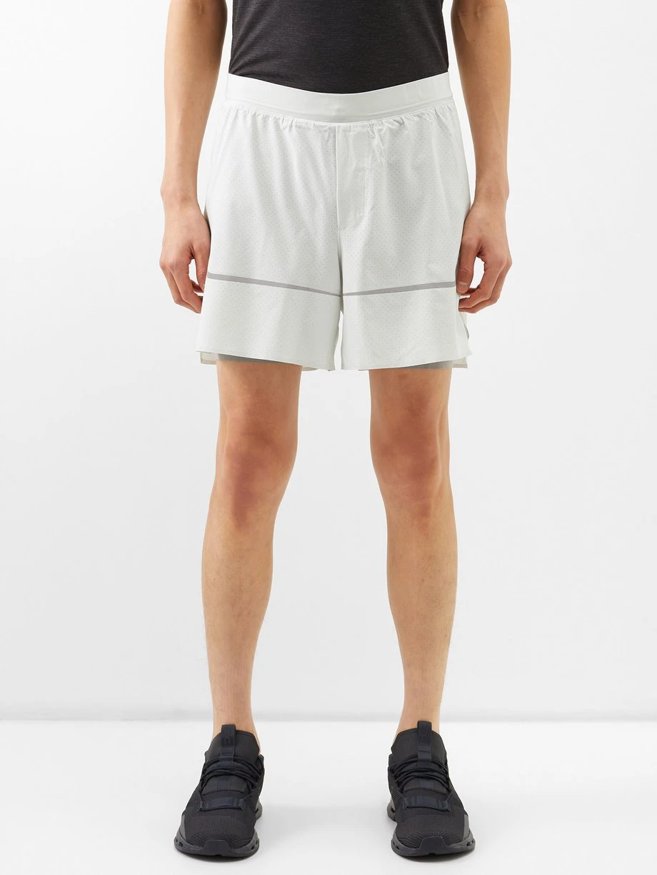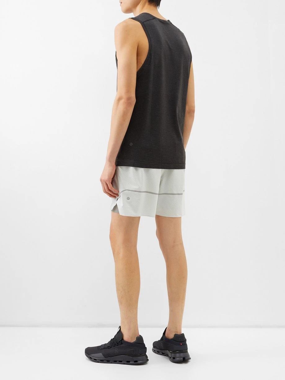 Lululemon’s grey Surge shorts are designed to help you hit your stride, made from lightweight four-way stretch jersey with chafe-free flatlocked seams.