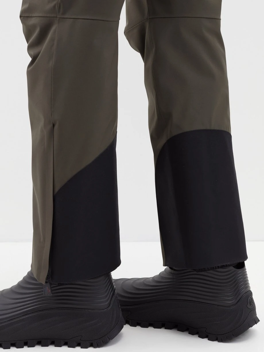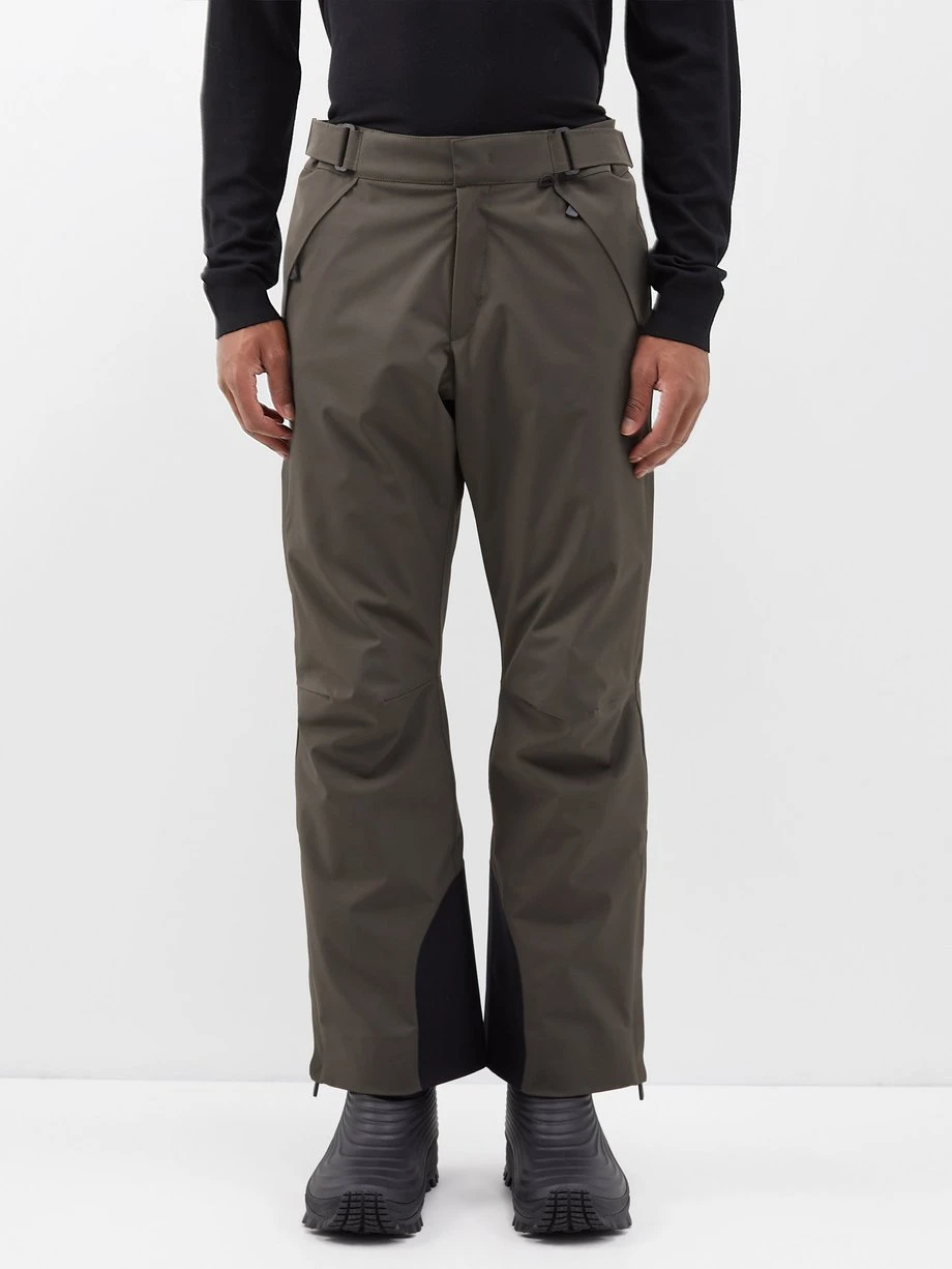 Moncler Grenoble’s khaki green ski trousers are designed to tackle the most challenging weather conditions with a technical shell that is water, and windproof, but breathable and stretchy to ensure free movement. They’re shaped for a close fit, belted at the waist and have zipped cuffs to easily go over boots whilst keeping the body warm and are equipped with a Recco® rescue Reflector in case of an emergency.