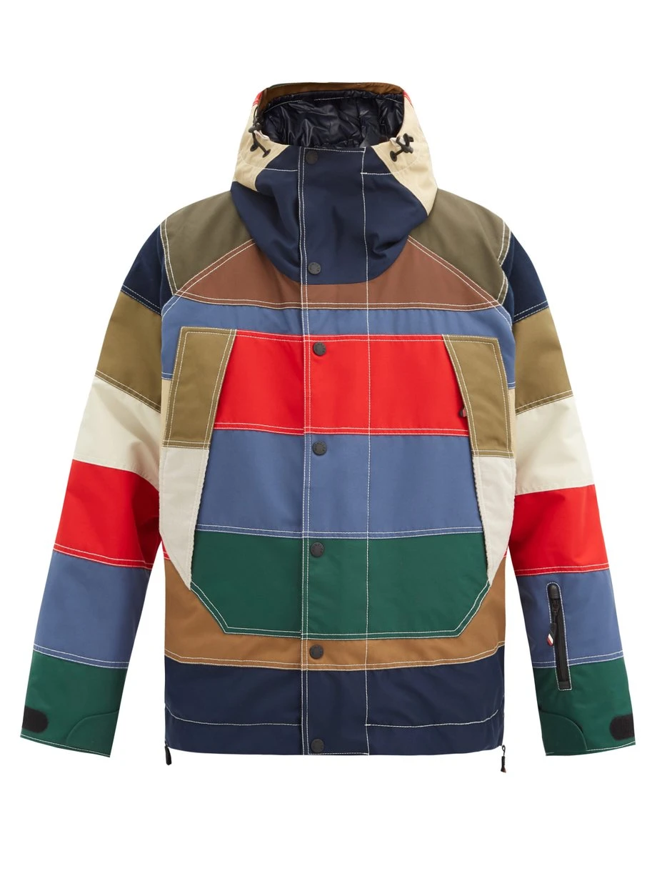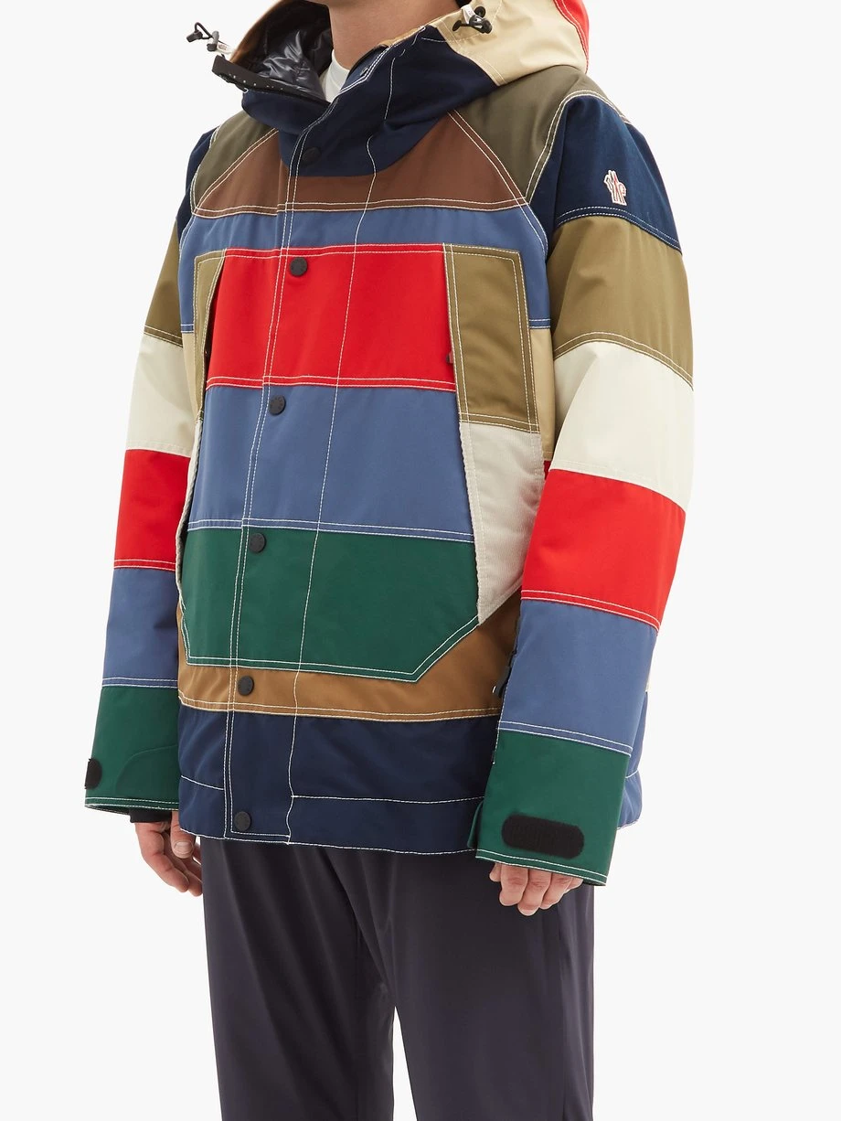 Moncler Grenoble’s multicoloured Chetoz ski coat is made from wind and rainproof nylon with a built-in goggle pocket and lens cloth, demonstrating Sandro Mandrino’s flair for technical innovation and performance wear. Crafted in Italy, it has water-repellent zipped pockets, a signature sleeve logo and a slot for your ski pass. Temper the silhouette with the adjustable draw cords and Velcro straps to seal out the cold in sub-zero temperatures.
