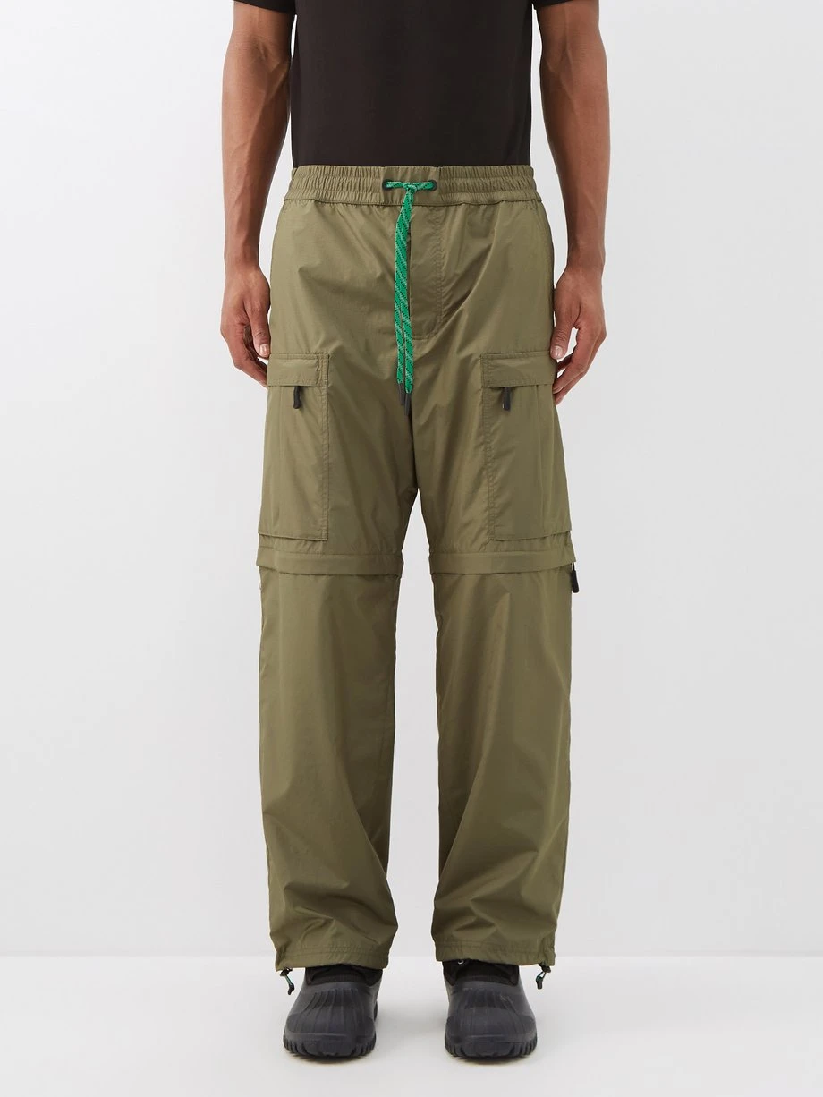 Moncler Grenoble riffs on mountaineering codes with these olive green ripstop cargo trousers, which can be unzipped at the knee and turned into shorts.
