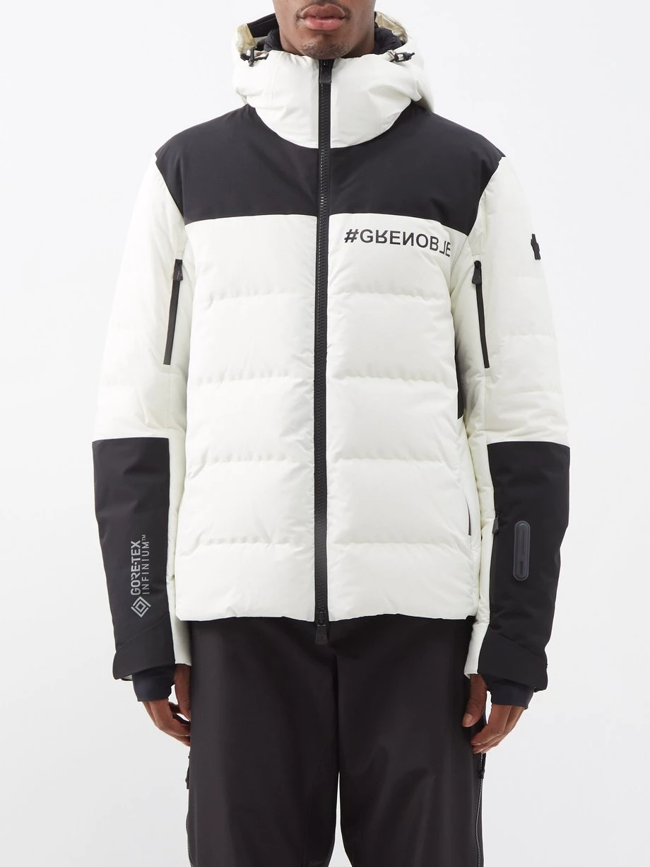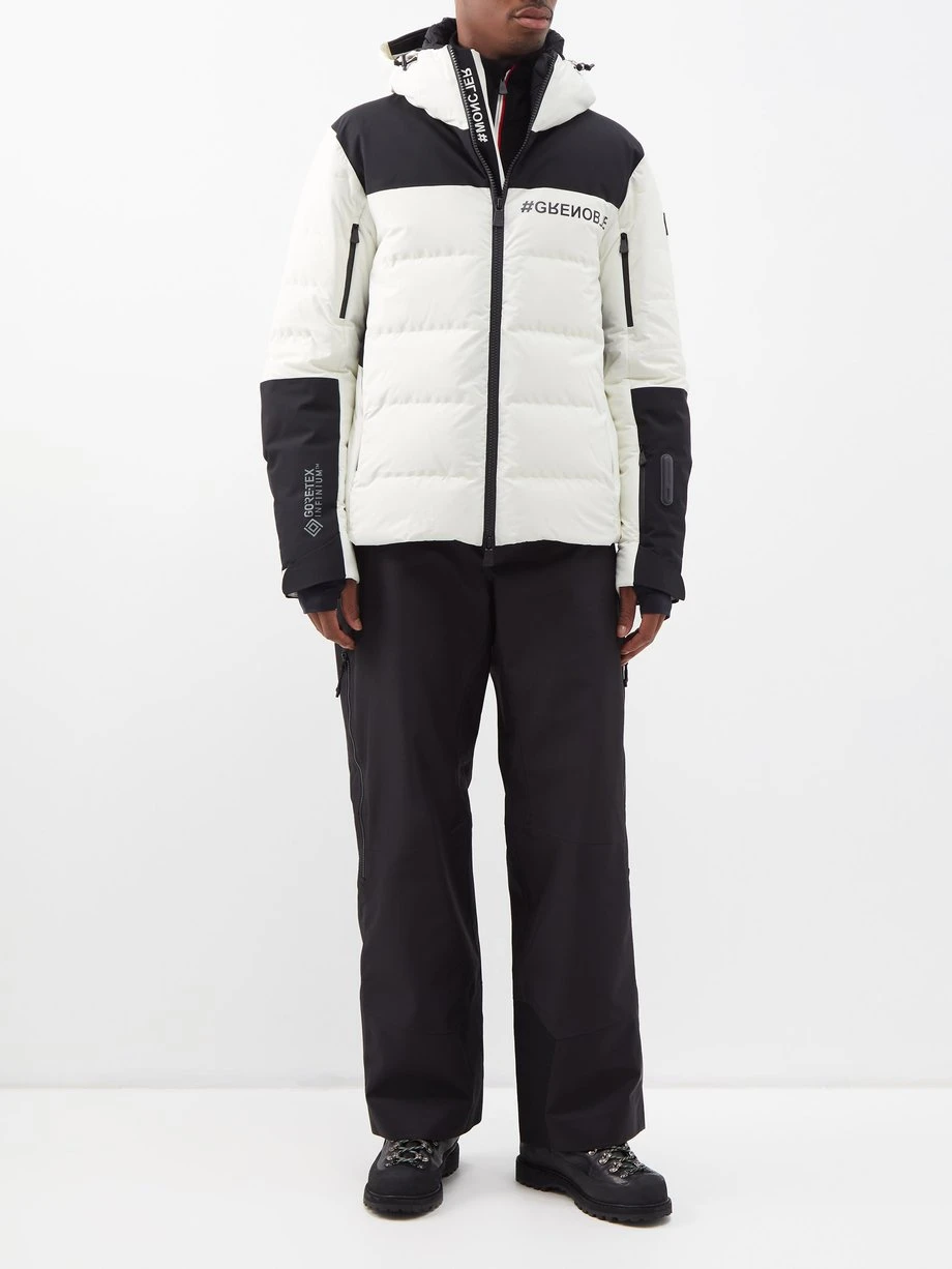 Moncler Grenoble’s alpine expertise underpins this white Montmiral ski jacket, which is made with a double-layer of innovative Gore-Tex Infinium and packed with insulating down and feathers for optimal warmth. Crafted with a drawcord hood and a visor, it has a ski pass pocket and a snow gaiter, then finishes with a RECCO reflector – a discreet location device for in the event of an emergency.