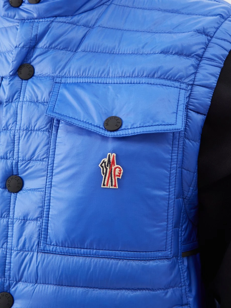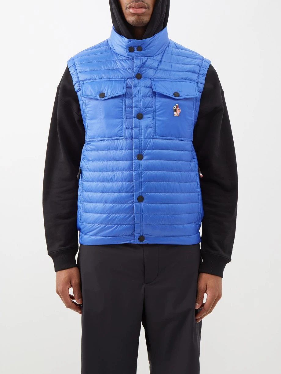 Moncler Grenoble’s blue Ollon gilet is crafted from a lightweight and water-repellent technical shell that channels the label’s outdoor expertise. It’s shaped to a close-fit for easy layering and packed with insulating down, then finished with chest flap pockets a signature logo patch.