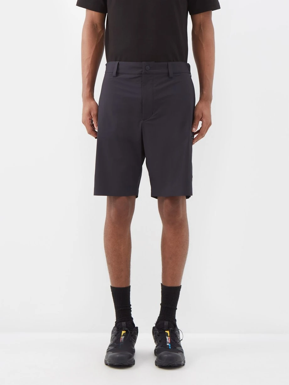 Moncler Grenoble’s black shorts are made from stretch ripstop for ease of movement and are adorned with reflective logos for low-light visibility.