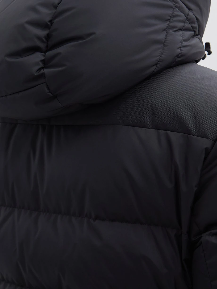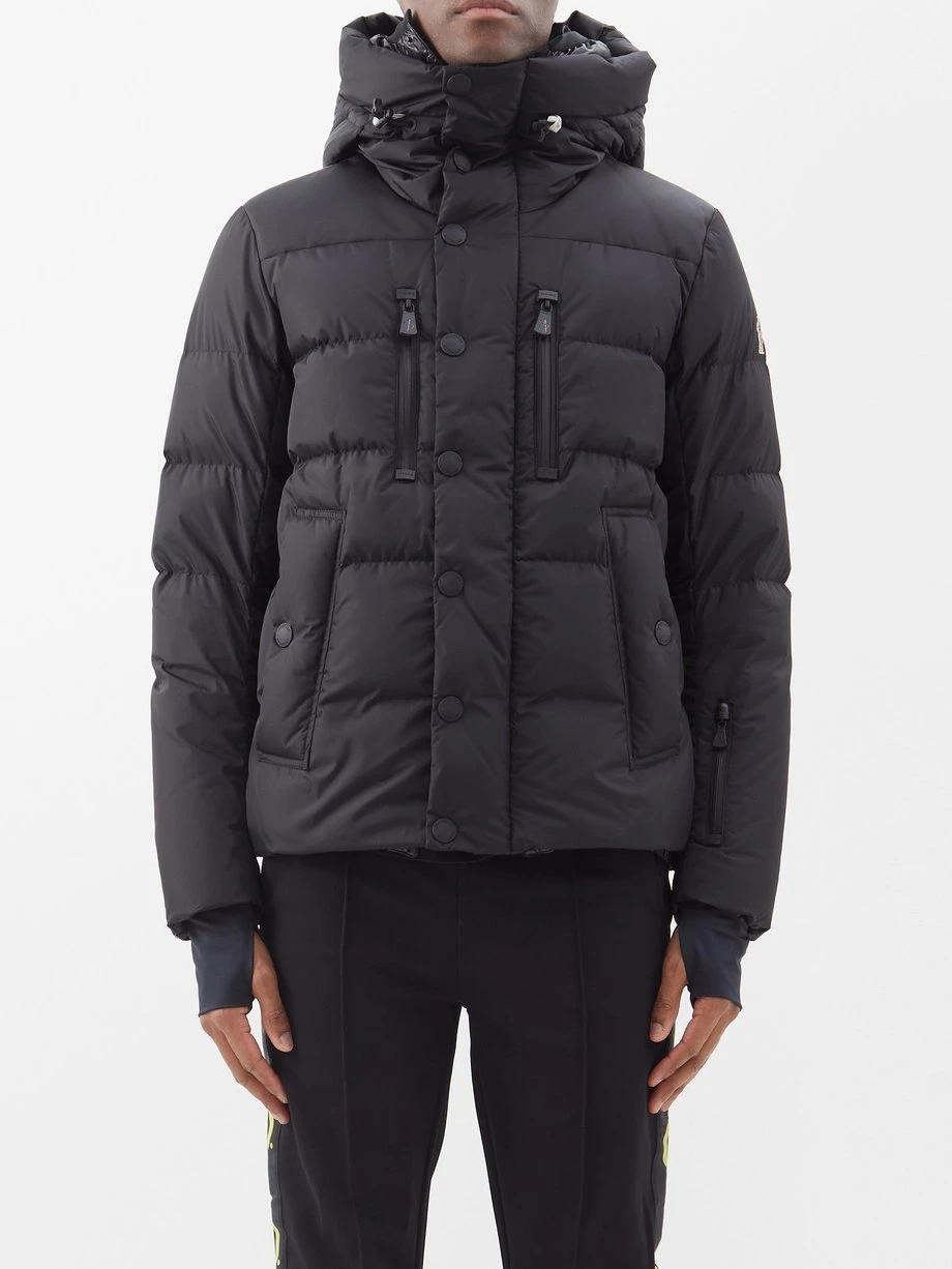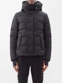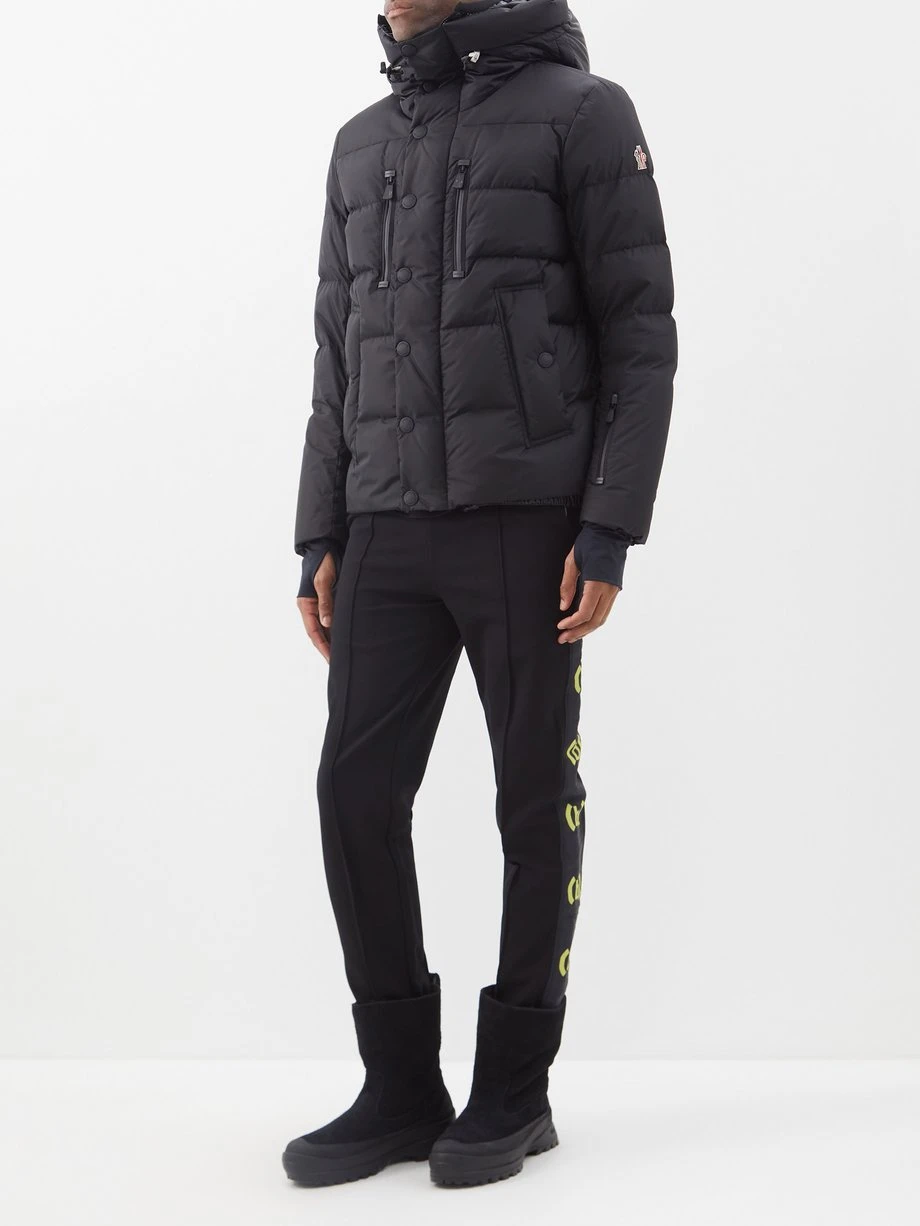 Moncler Grenoble’s black Rodenberg jacket is expertly crafted from technical nylon – a durable and waterproof shell – then filled with insulating down and feathers. Showcasing the label’s skiwear expertise it’s enhanced with water-resistant zips, a ski pass pocket and wrist gaiters rendering it essential for all mountain activities.