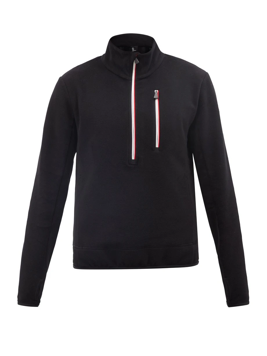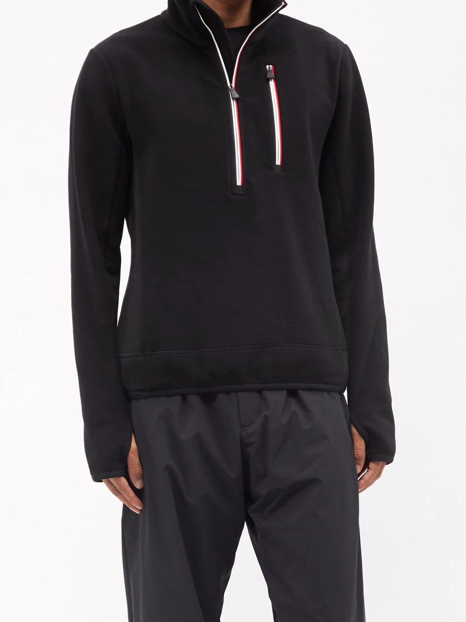 Moncler Grenoble crafts this black sweatshirt from warming jersey that’s ideal as a mid-layer when skiing. It’s shaped with a zipped high neck and chest pocket, then finished with thumbhole cuffs.