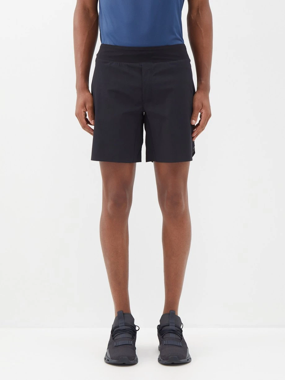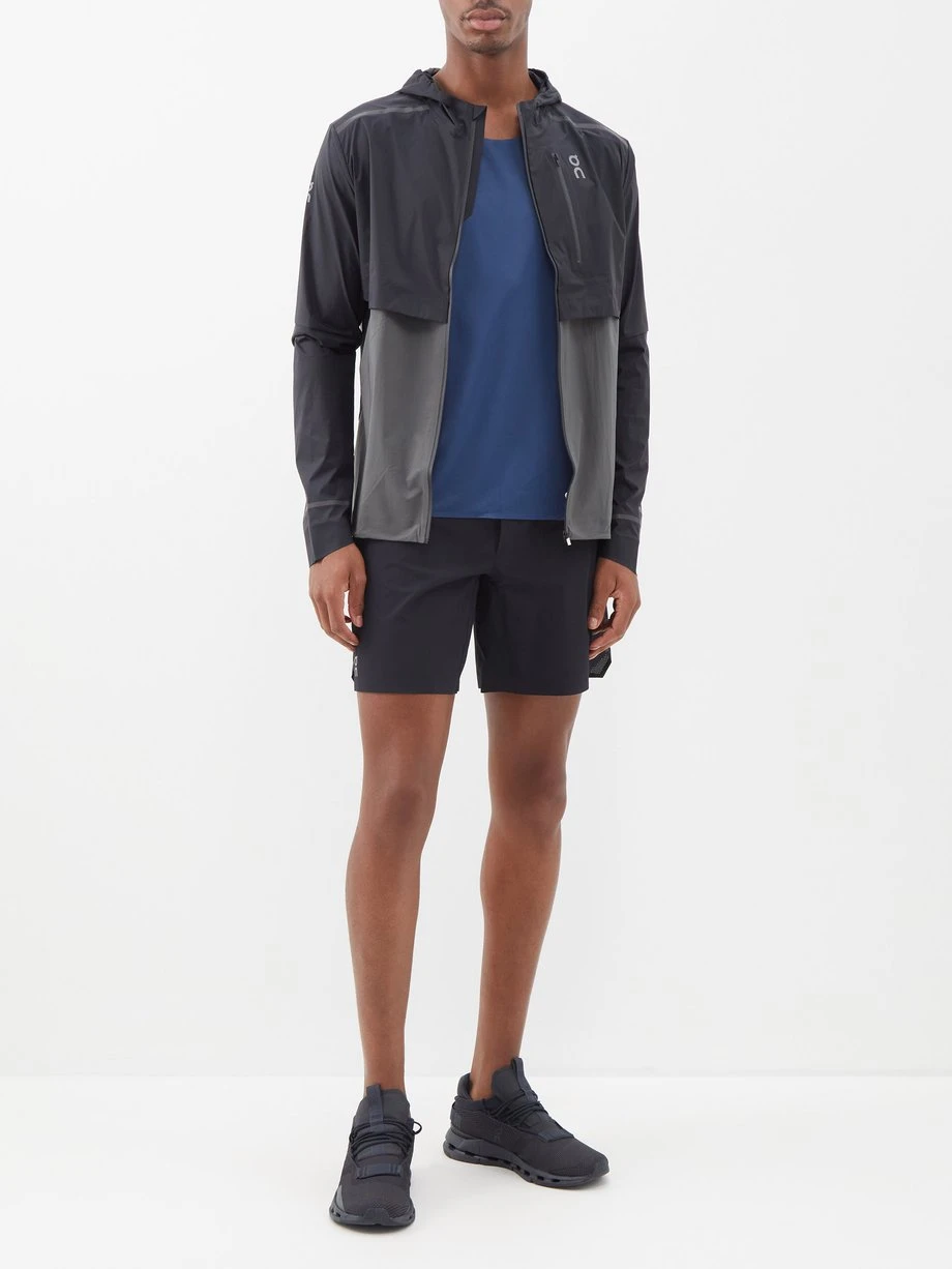 On crafts these black Lightweight running shorts from a durable four-way stretch recycled-fibre blend which is fast drying and offers enhanced flexiblity.