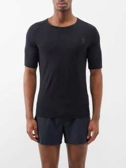 Designed for comfort and performance when hiking or training, On’s black T-shirt is made from thermoregulating merino spun with an exceptionally lightweight nylon yarn.