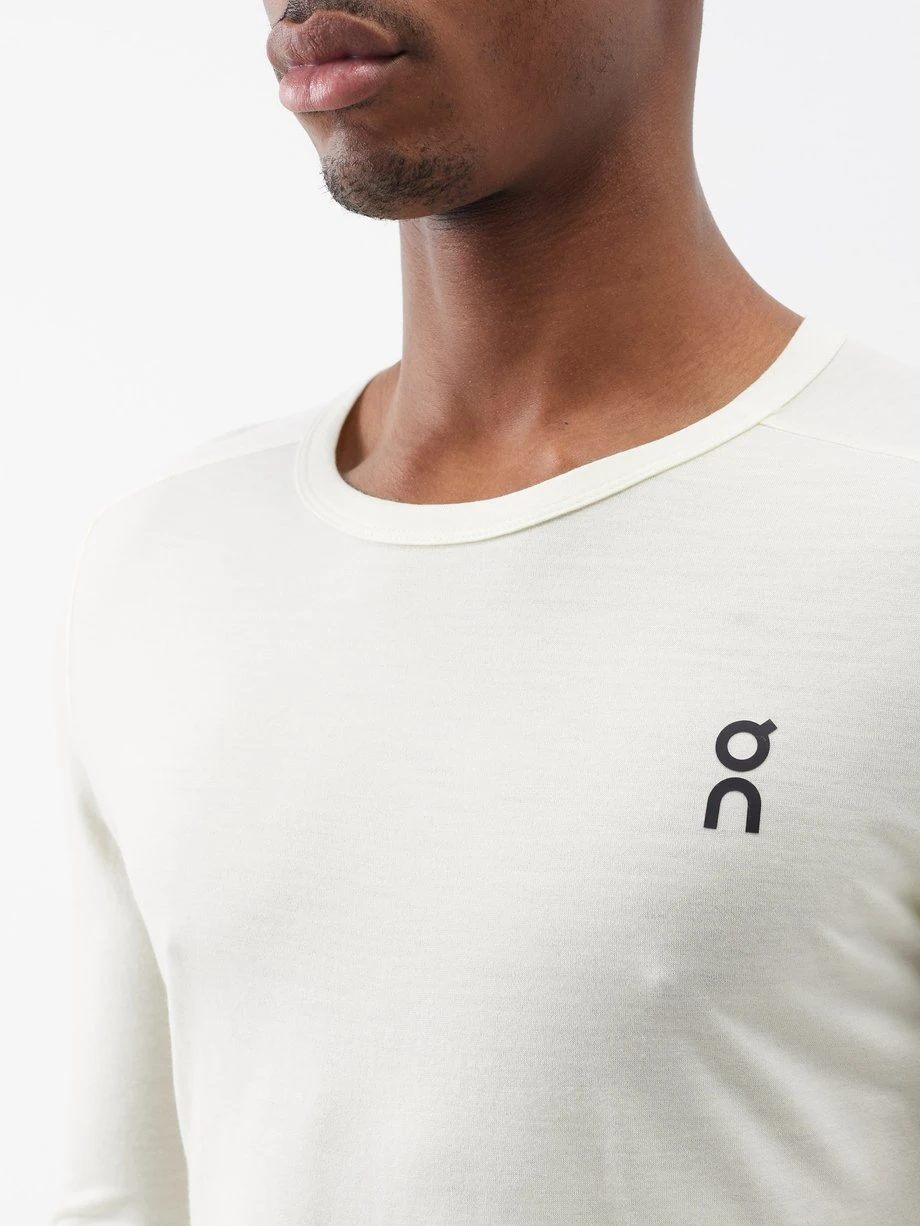 Designed for warmth and performance, On’s white running top is cut from a merino blend, spun with durable polyamide fibre for longevity.