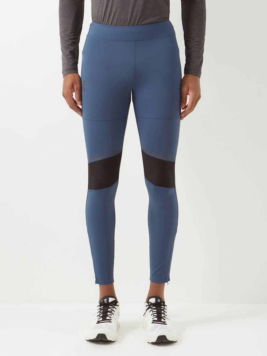 On crafts these navy leggings from stretchy jersey with zipped cuffs and panels that keep knee ligaments warm in cool climes.