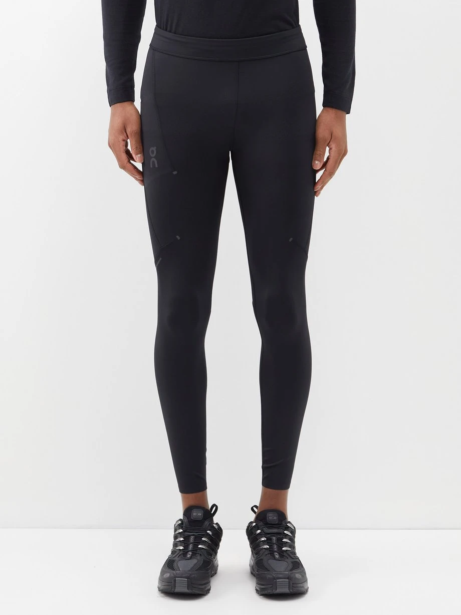 Crafted from high-stretch recycled polyester, On’s black Performance tights are designed for agility with targeted panels and an adjustable waistband.